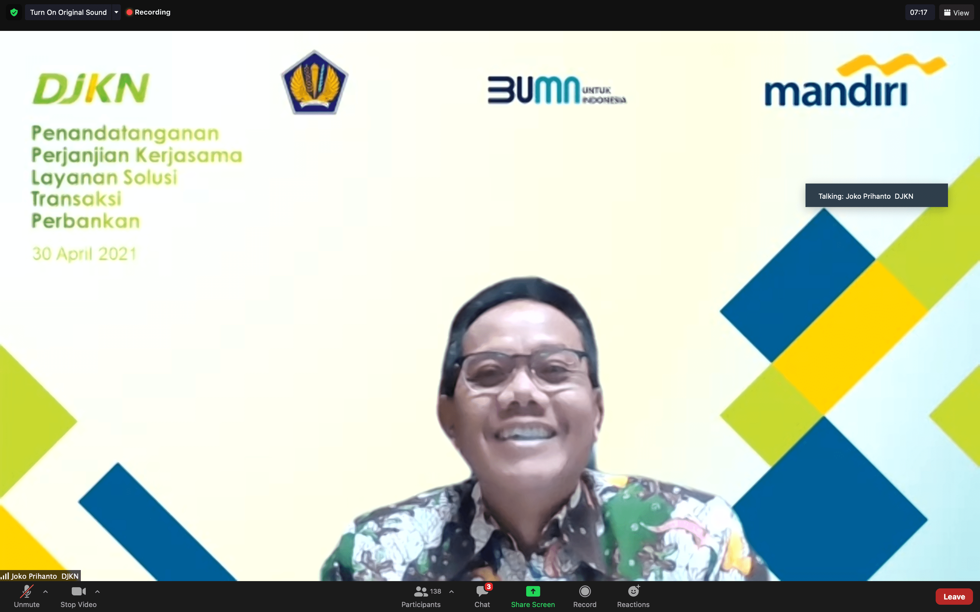 dengan Joko, SVP Government Institutional Bank Mandiri Dadang Ramadhan berharap