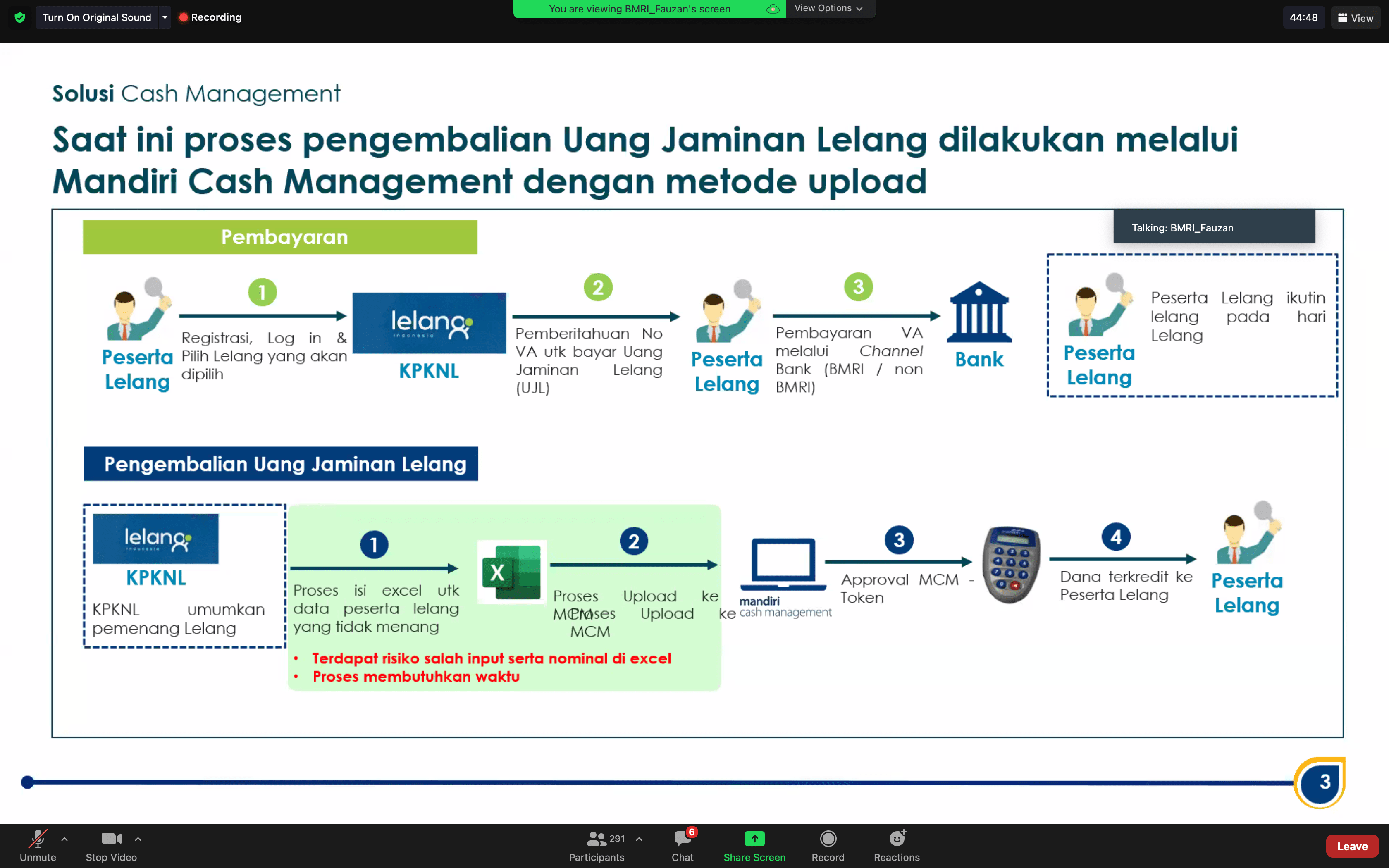 Dalam kegiatan penandatanganan kerja sama tersebut juga dilanjutkan sosialisasi serta diskusi terkait transaksi lelang pasca ditandatanganinya perjanjian. Sosialisasi dan diskusi tersebut dibawakan langsung oleh Bank Mandiri serta diikuti Kantor Wilayah DJKN dan Kantor Pelayanan Kekayaan Negara dan Lelang (KPKNL) dari seluruh Indonesia.