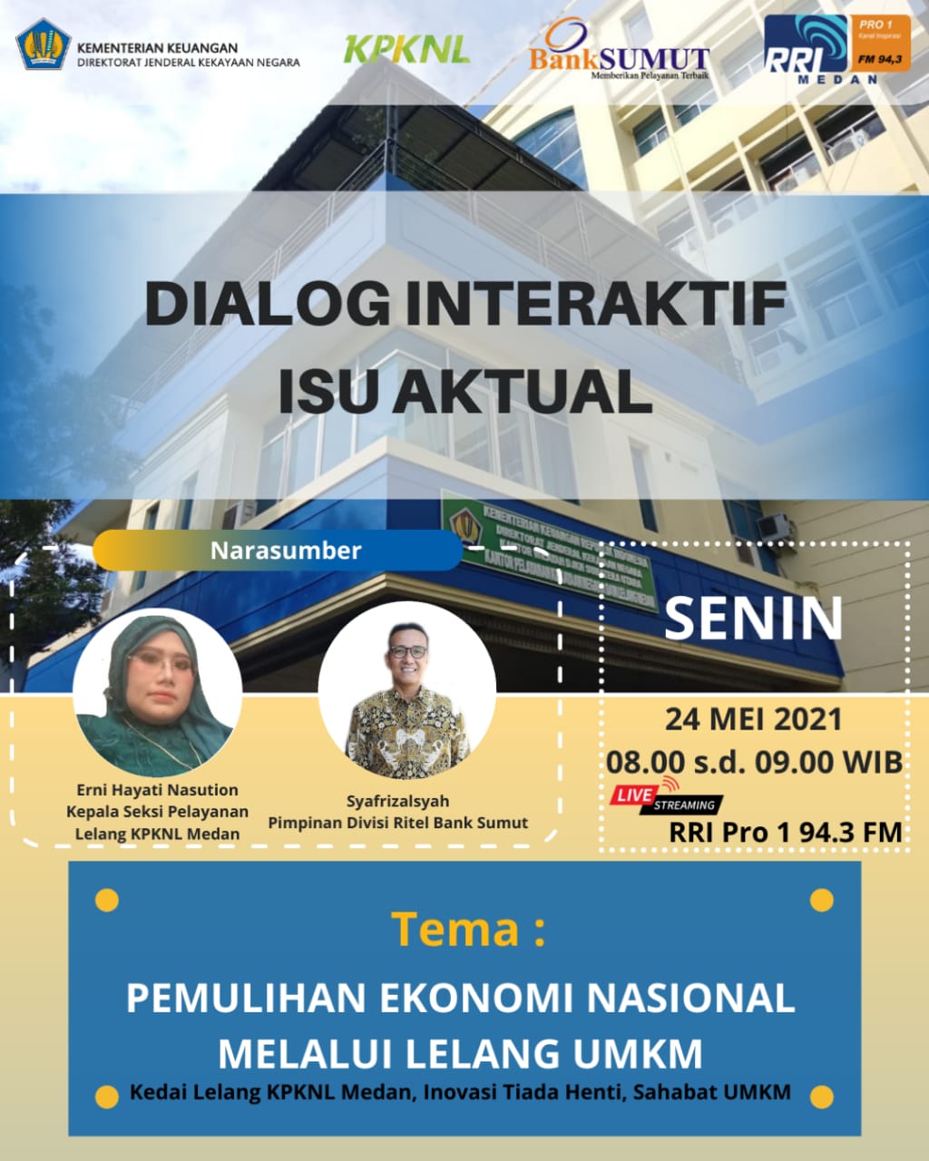 Siaran ini menghadirkan Kepala Seksi Pelayanan Lelang Erni