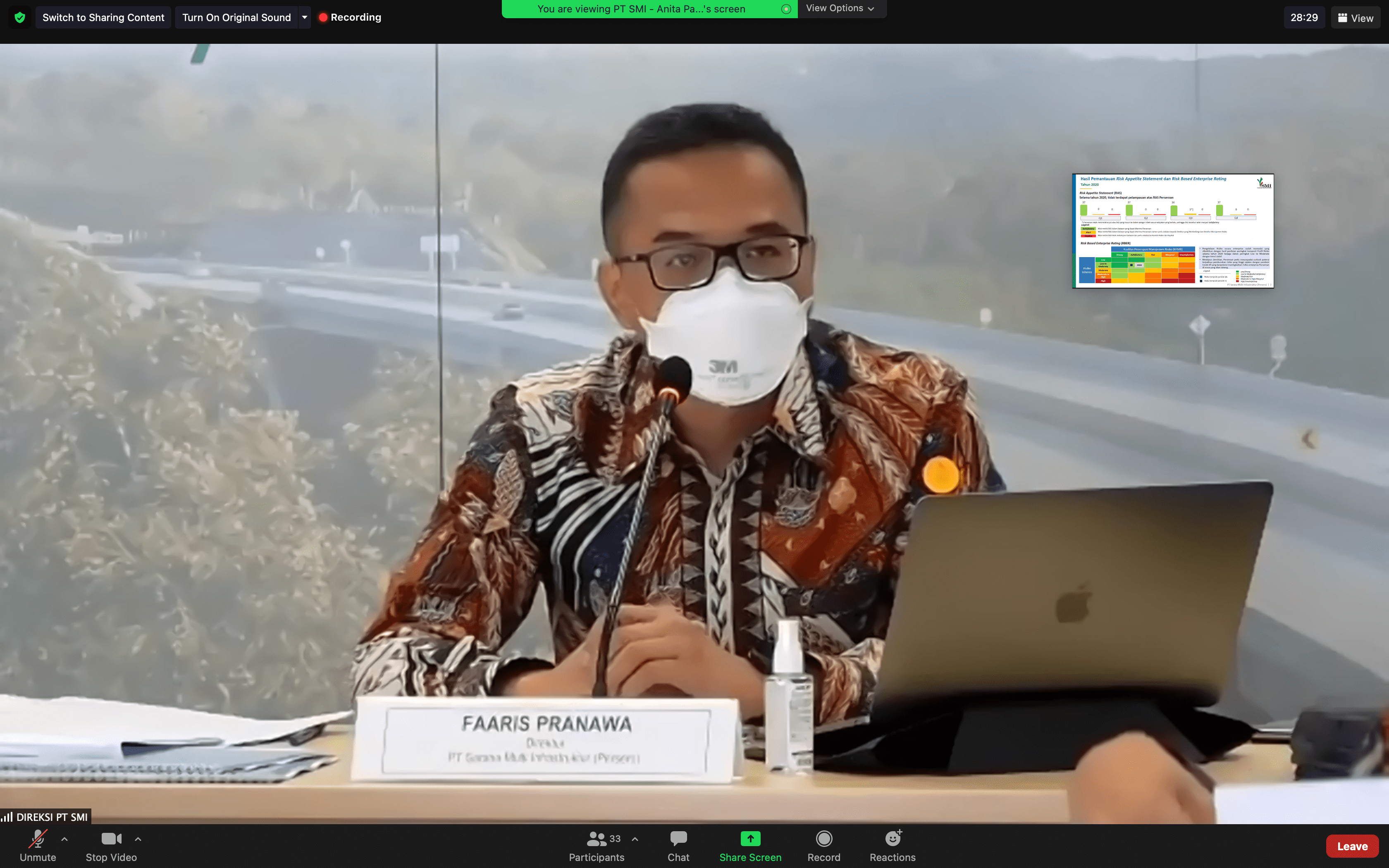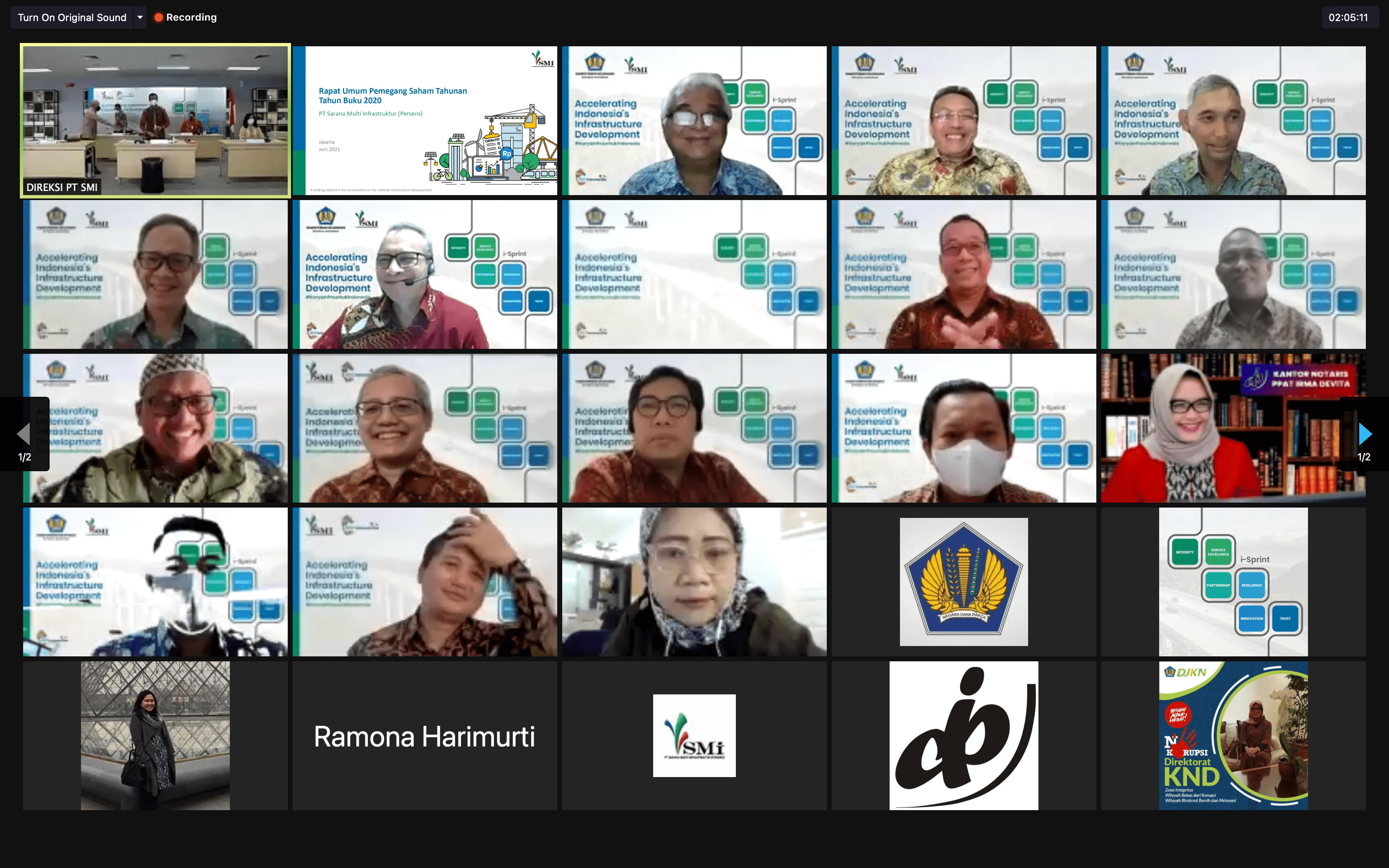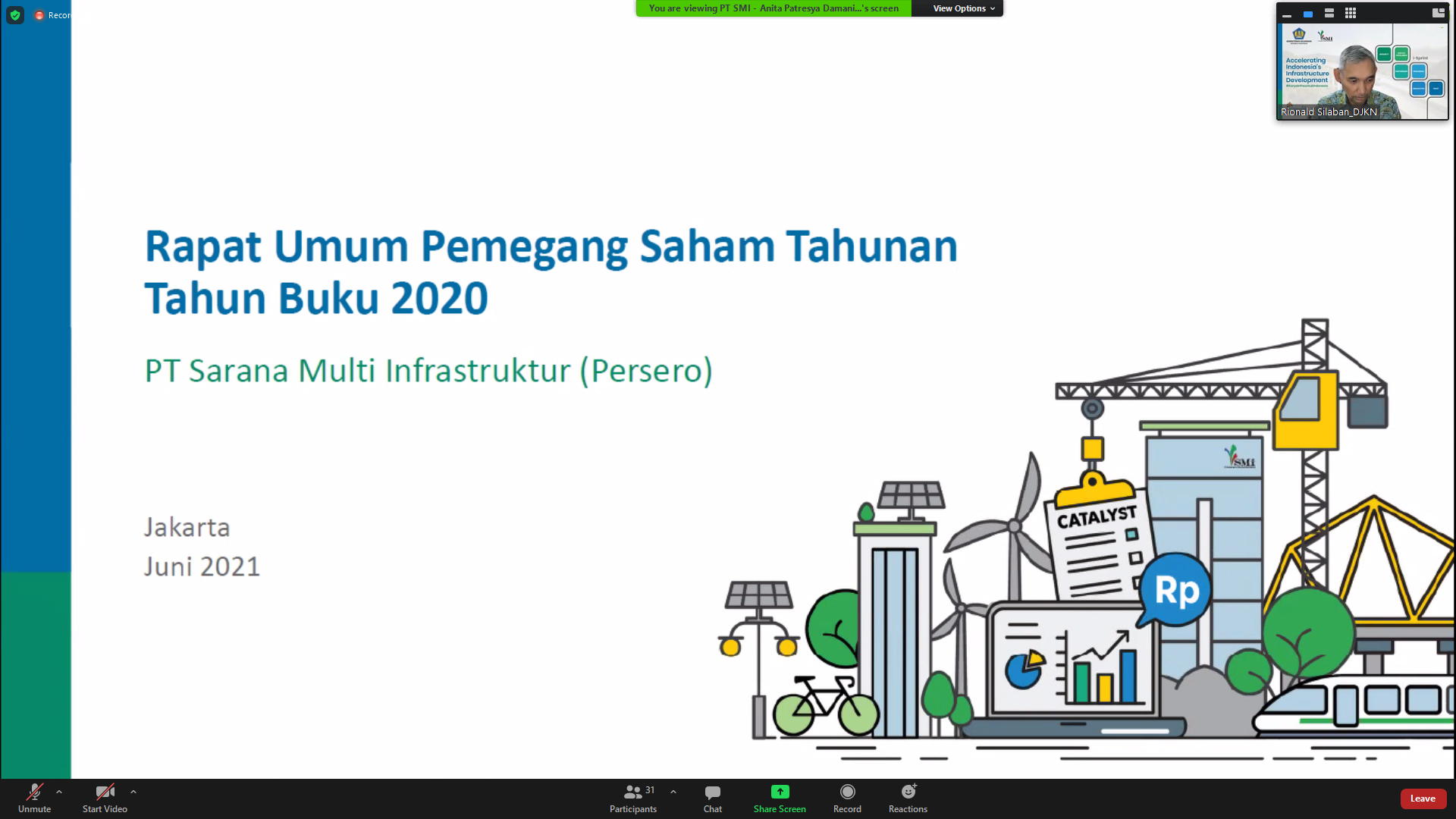 Jakarta – PT Sarana Multi Infrastruktur (PT SMI) berhasil melampaui target Rencana Kerja dan Anggaran Perusahaan (RKAP) Tahun Anggaran 2020. Dalam laporan keuangan 2020 (audited) dijelaskan bahwa PT SMI berhasil membukukan laba bersih sebesar Rp1,907 triliun setara dengan 108,7 persen dari RKAP 2020. “Secara umum, kualitas laba maupun hal-hal lain yang menunjukan kinerja perusahaan saya rasa sangat baik. Laba bersih bahkan meningkat dari Rp1,7 triliun menjadi Rp1,9 triliun ditengah pandemi,” jelas Direktur PT SMI Edwin Syahruzad dalam Rapat Umum Pemegang Saham Tahunan Tahun Buku 2020 PT SMI yang diadakan secara daring pada Selasa (22/06).