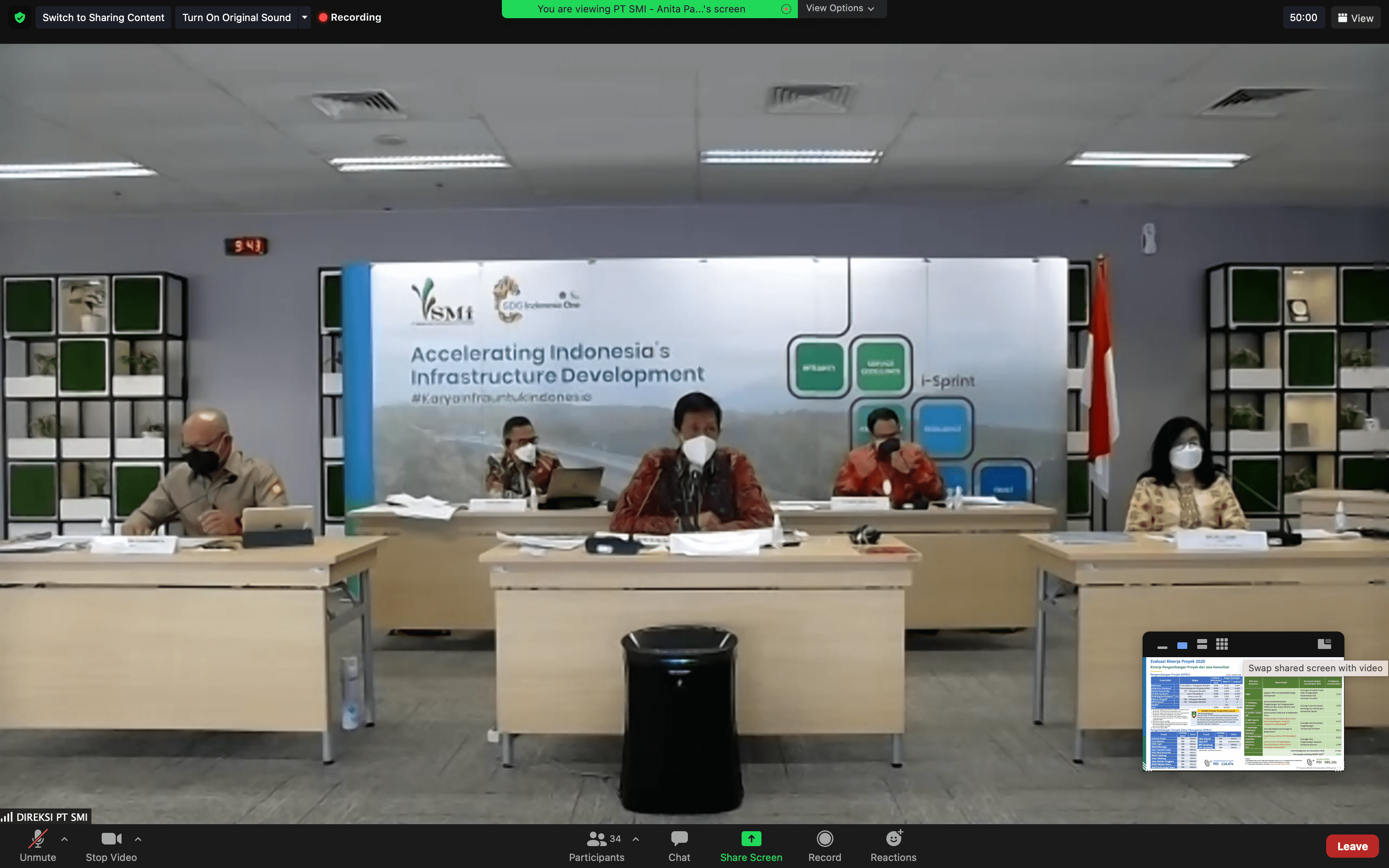 Edwin menyampaikan bahwa capaian kinerja tersebut berasal dari dua bisnis inti PT SMI yaitu pembiayaan dan investasi serta jasa konsultasi dan pengembangan proyek. Dalam laporan yang ia sampaikan, tercatat PT SMI berhasil melakukan pembiayaan dan investasi regular terhadap 258 proyek dengan total nilai sebesar Rp680,05 triliun serta pembiayaan dan investasi dalam rangka Pemulihan Ekonomi Nasional (PEN) terhadap 34 proyek dengan total nilai sebesar Rp19,13 triliun.