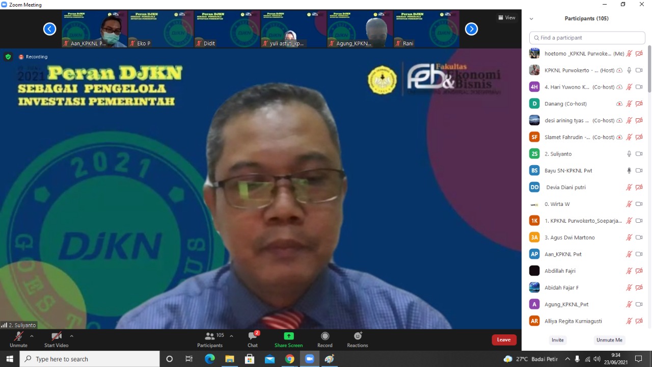 Peran DJKN dalam Pengelolaan Investasi Pemerintah dengan narasumber Kasubdit KND Sri Yuwono