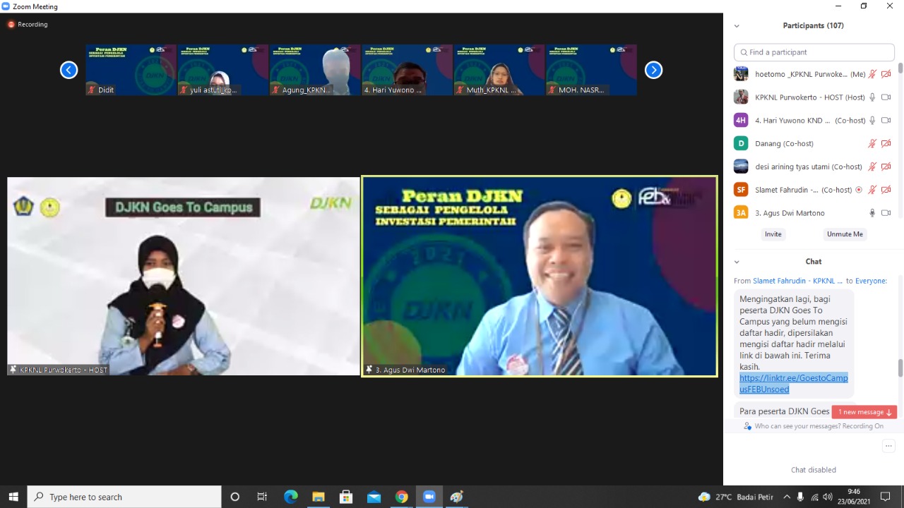 dengan Fakultas Ekonomi dan Bisnis (FEB) Unsoed pada Jum’at (18/6), DJKN