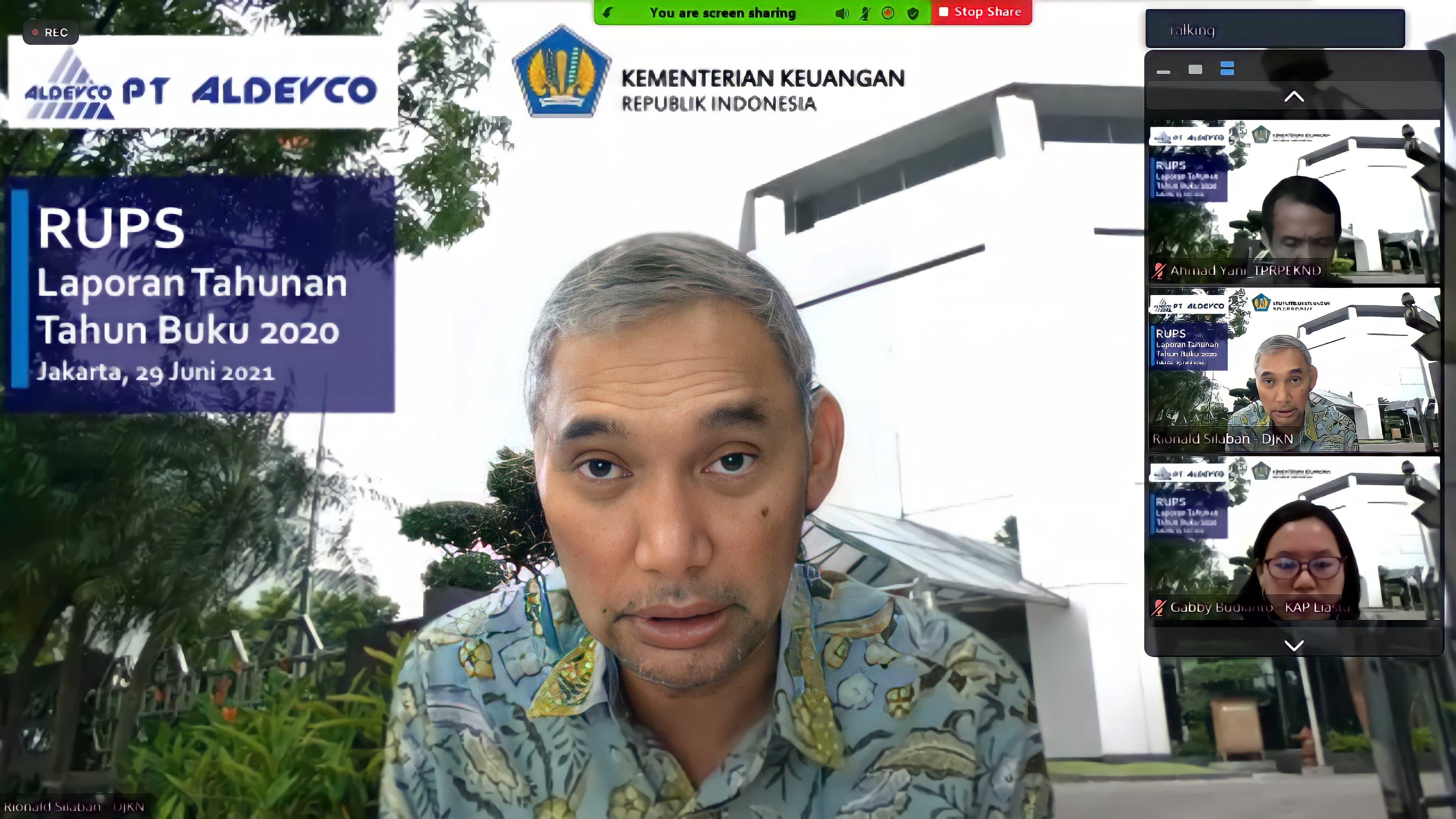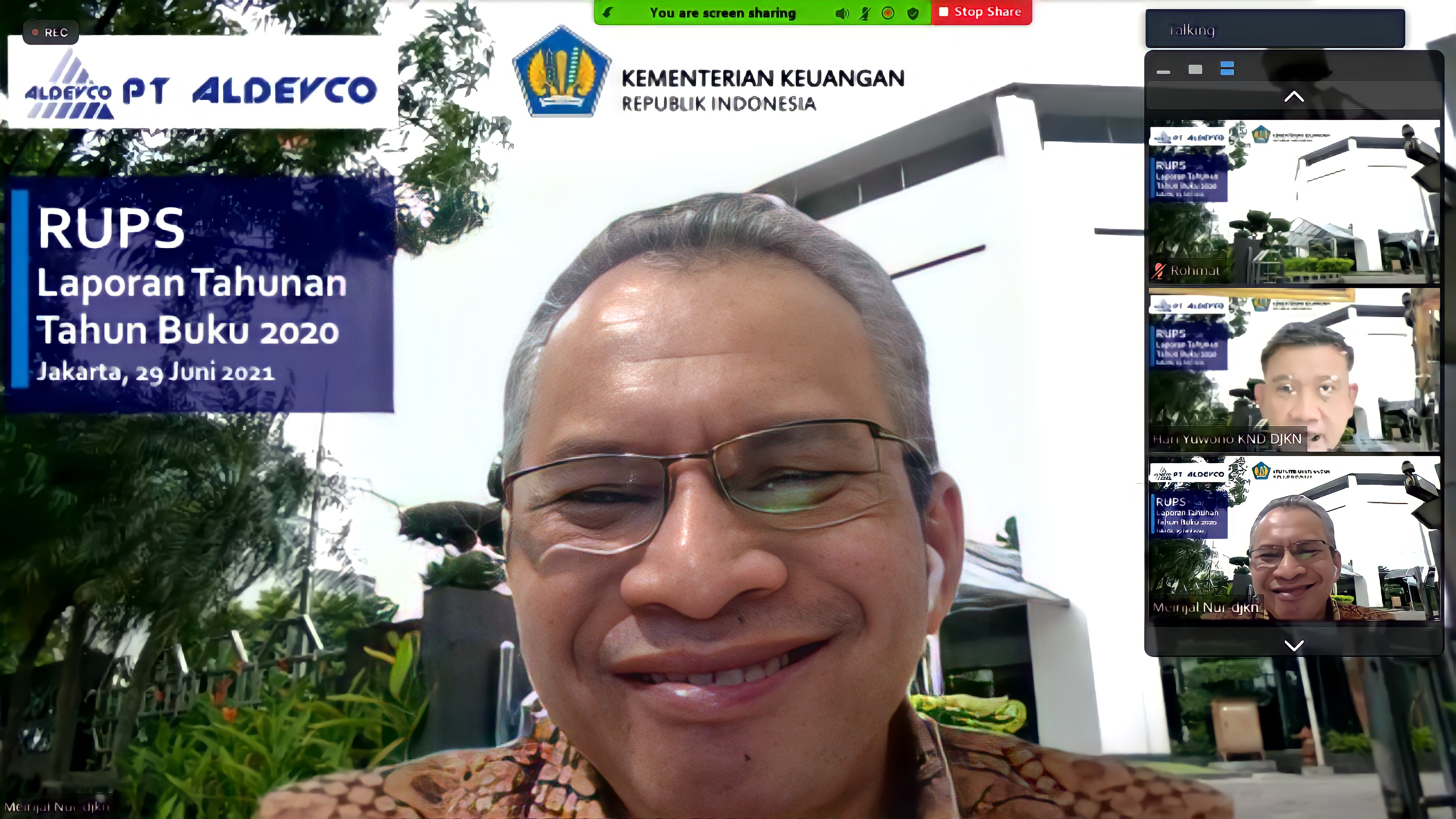 Jakarta – PT Aldevco melaksanakan Rapat Umum Pemegang Saham (RUPS) pada Selasa (29/06), secara daring untuk membahas dan mengesahkan Laporan Tahun Buku 2020. Dalam RUPS tersebut Direktur PT Aldevco Ahmad Ridwan mengatakan bahwa Laporan Keuangan PT Aldevco Tahun 2020 berhasil mendapatkan opini Wajar Tanpa Pengecualian (WTP) dari Kantor Akuntan Publik Liasta, Nirwan, Syafruddin dan Rekan. Ridwan juga menyampaikan bahwa pada Agustus 2020, PT Aldevco mendapat anchor tenant baru. “LPEI menyewa ruang kantor Aldevco seluas 195 m2. Kemudian, PT Geo Dipa Energi juga menambah ruang sewa seluas 797 m2 pada bulan November 2020,” terangnya.
