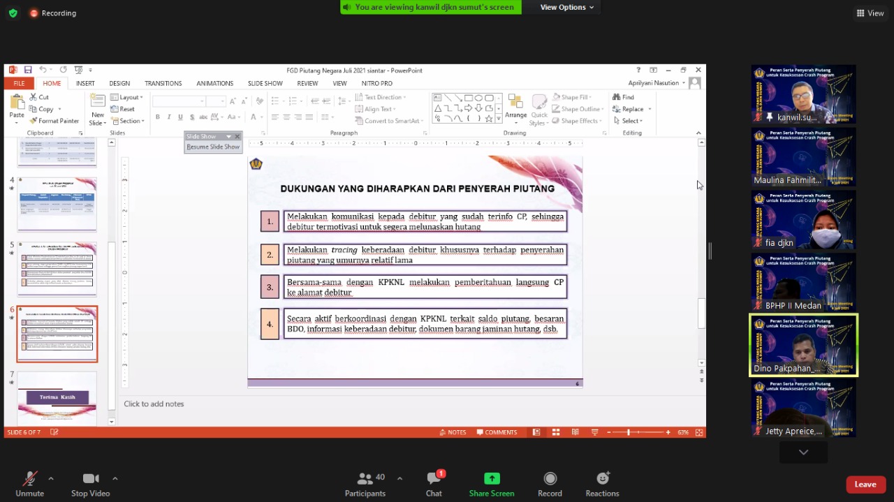 Discussion (FGD) Piutang Negara pada Selasa (6/7) yang diselenggarakan secara