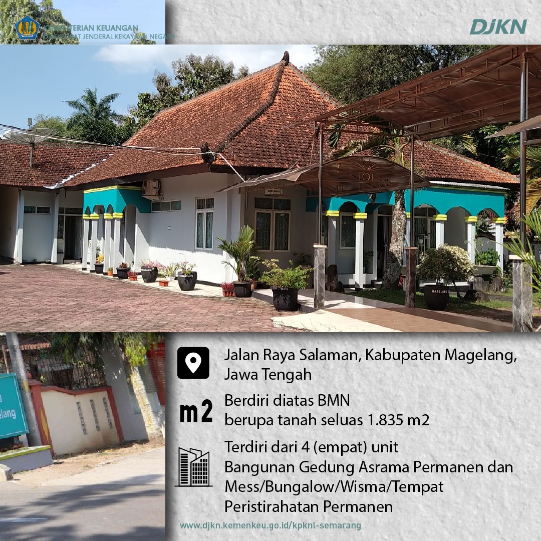Semarang – Direktorat Jenderal Kekayaan Negara (DJKN) melalui Kantor Pelayanan Kekayaan Negara dan Lelang (KPKNL) Semarang menerbitkan Surat Keputusan atas nama Menteri Keuangan Republik Indonesia Nomor: S-159/MK.6/ WKN.09/KNL.01/2021 hal Persetujuan Pemanfaatan Pinjam Pakai Barang Milik Negara (BMN) pada Balai Pelatihan Kesehatan (Bapelkes) Semarang Kepada Pemerintah Daerah Kabupaten Magelang. Pinjam pakai tersebut bertujuan untuk menyediakan tempat isolasi terpusat guna mengantisipasi penambahan kasus covid-19 di Kabupaten Magelang.