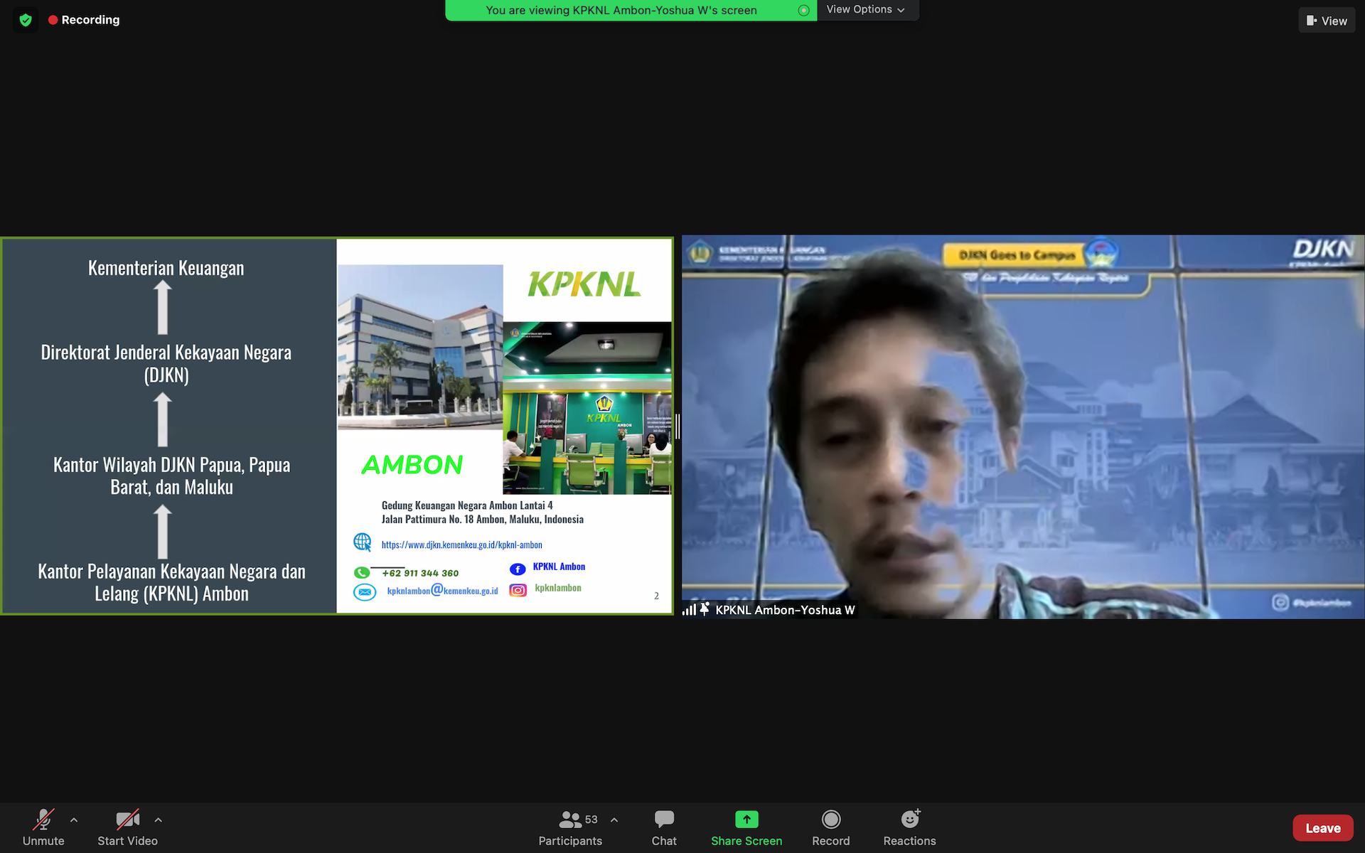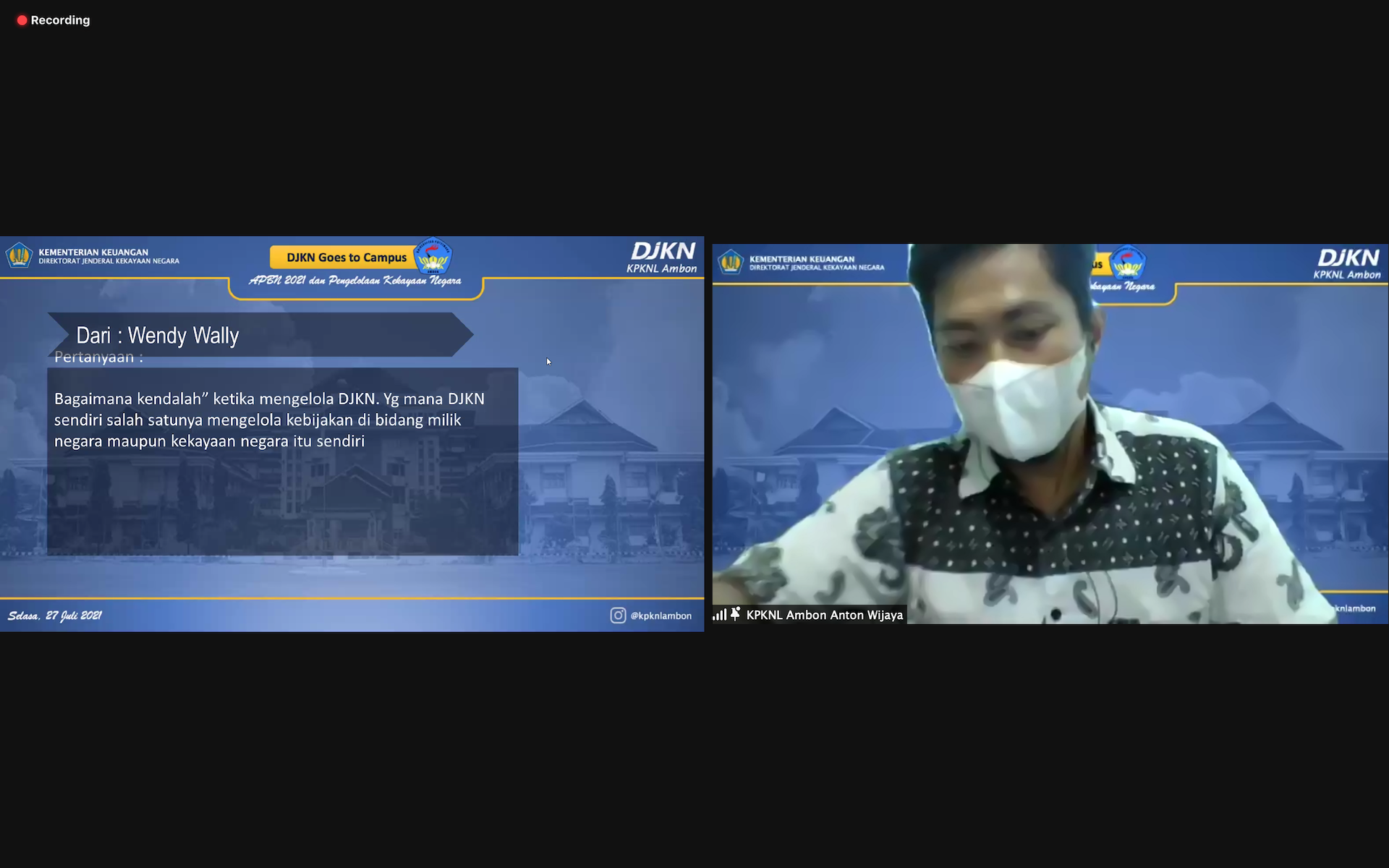 kegiatan DJKN Goes to Campus dengan tema “APBN 2021 & Pengelolaan Kekayaan