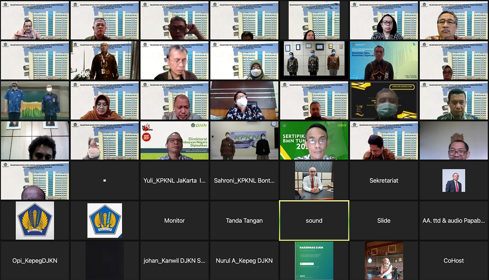 Jakarta – Direktur Jenderal Kekayaan Negara Rionald Silaban melantik dua Ketua Panitia Urusan Piutang Negara Cabang (PUPNC) serta 32 Pejabat Fungsional Pelelang pada Jumat, (06/08) yang dilakukan secara hybrid. Ia menekankan kepada seluruh pejabat yang dilantik agar selalu menjaga integritas dalam memberikan pelayanan. “Berikanlah pelayanan terbaik dan penuhi tanggung jawab Saudara dengan sense of responsibility,” terang Rio.