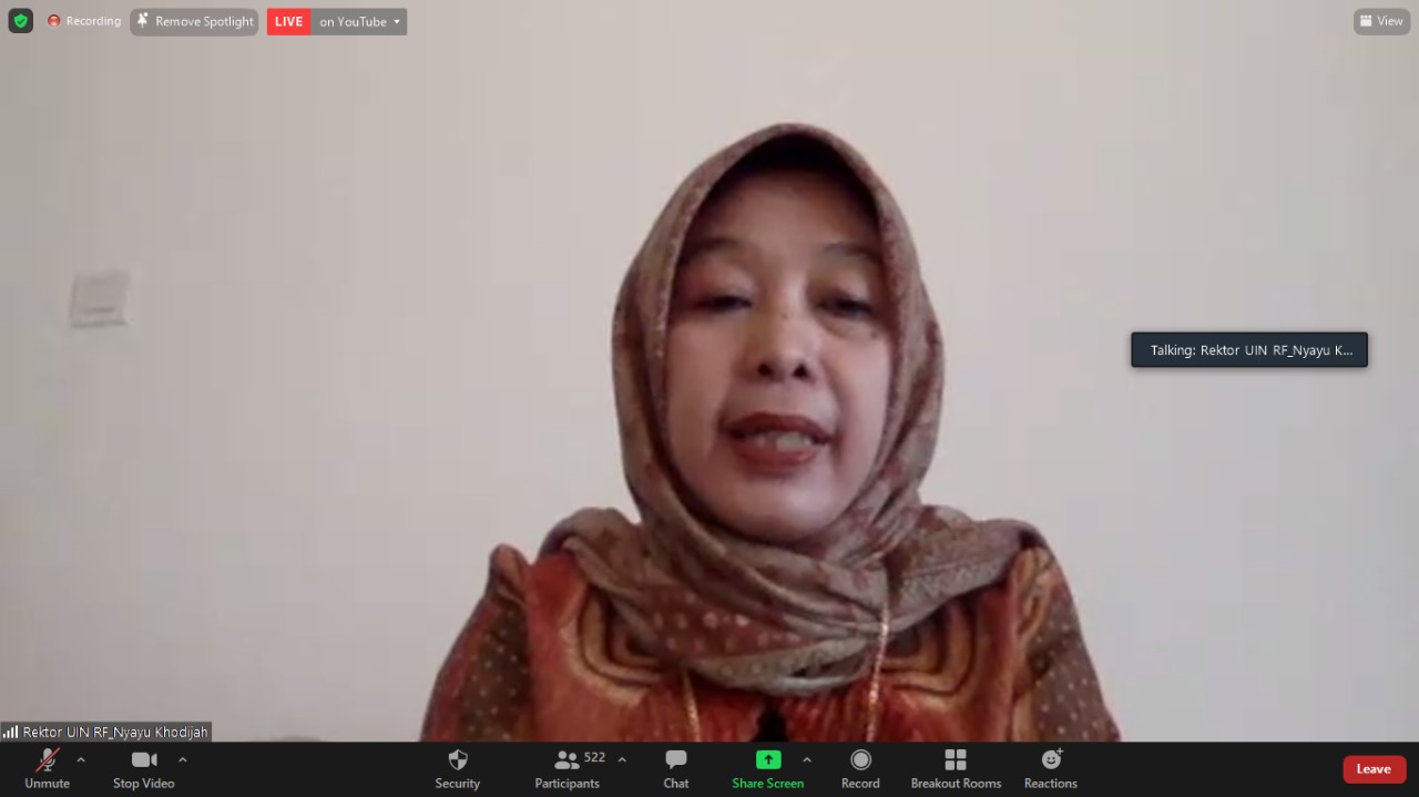 dilanjutkan Keynote Speech Rektor UIN Raden Fatah Prof. DR. Nyayu Khodijah,