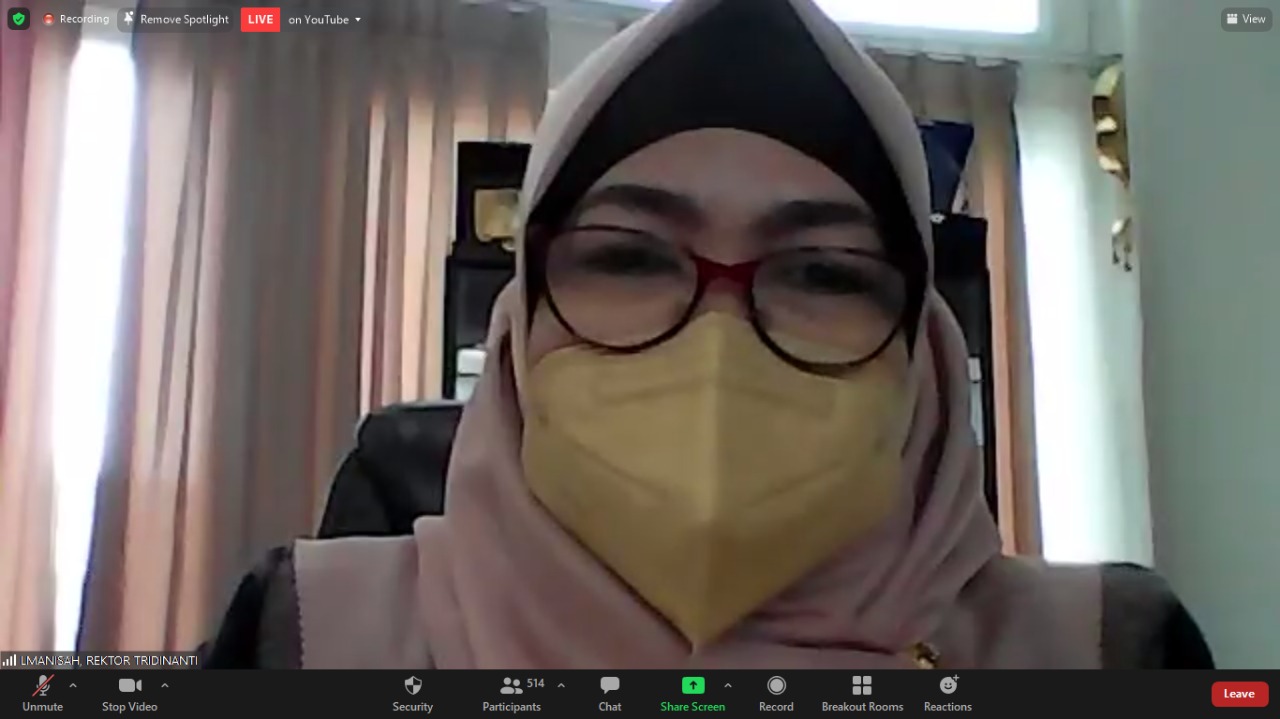 Rektor Universitas Tridinanti, Ibu DR. Ir. Nyimas Manisah,