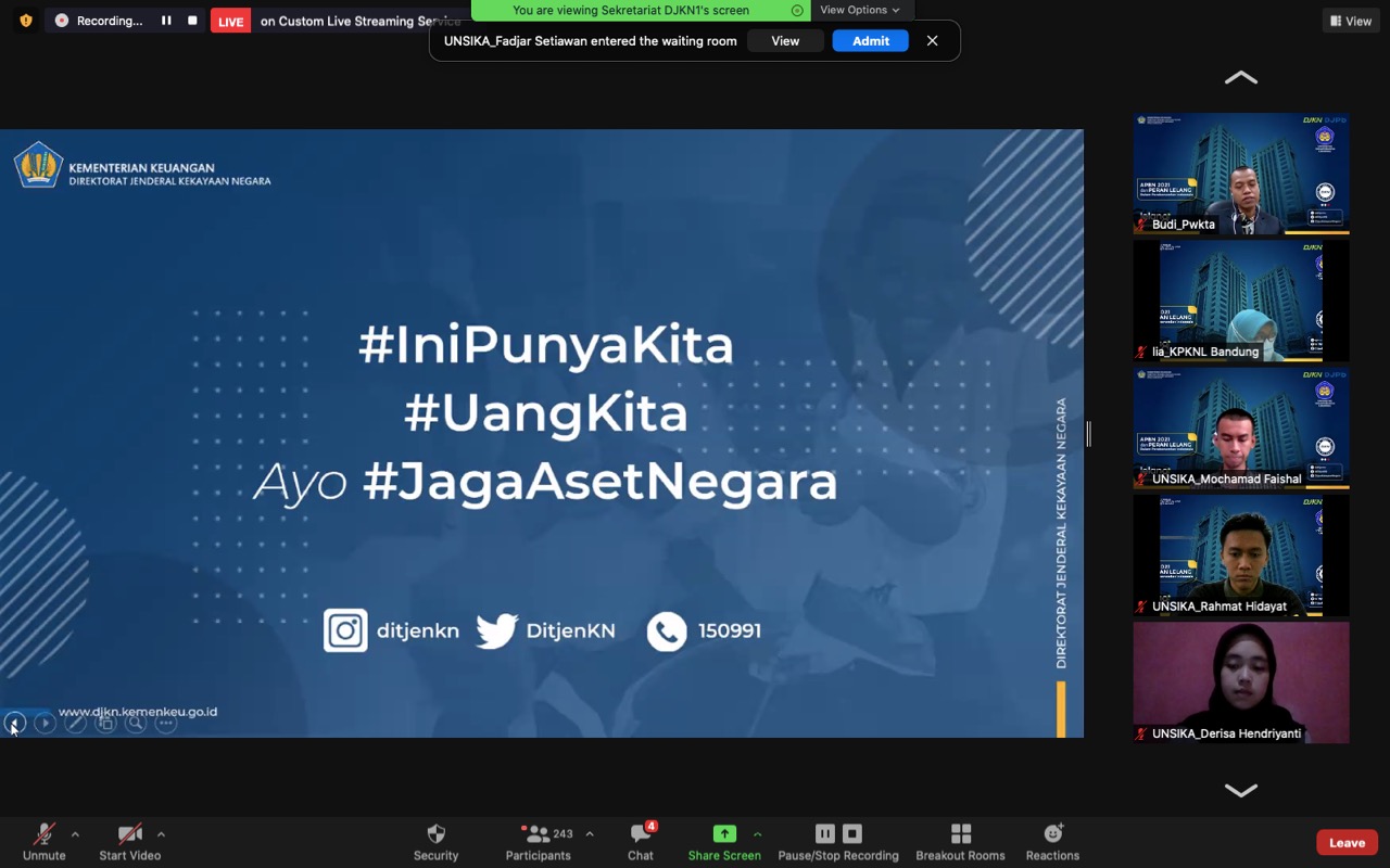 plakat secara virtual dari Kepala KPKNL Nunung Ekolaksito kepada Wakil Rektor I