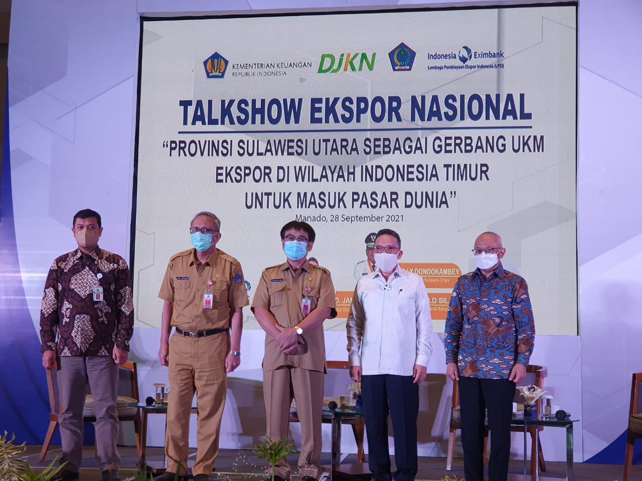 Sambutan tersebut disampaikan Rionald pada acara Talkshow Ekspor Nasional dengan tema “Provinsi Sulawesi Utara sebagai Gerbang UKM Ekspor di Wilayah Indonesia Timur Untuk Masuk Pasar Dunia” pada Selasa (28/09). Talkshow tersebut merupakan bentuk sinergi antara Lembaga Pembiayaan Ekspor Indonesia (LPEI), DJKN, serta Pemerintah Provinsi Sulawesi Utara dalam mendukung peningkatan ekspor nasional khususnya di Provinsi Sulawesi Utara dan menciptakan eksportir baru.