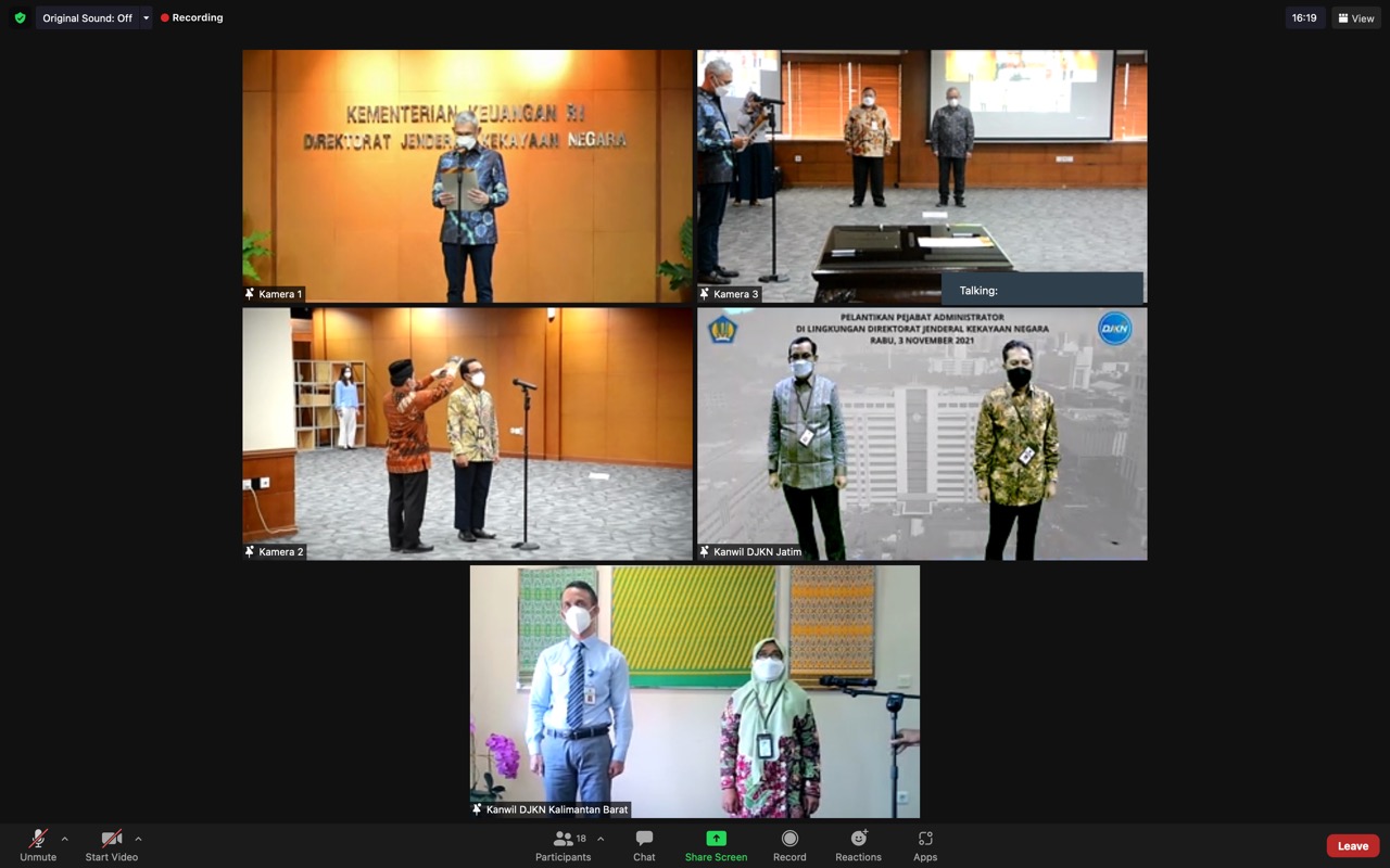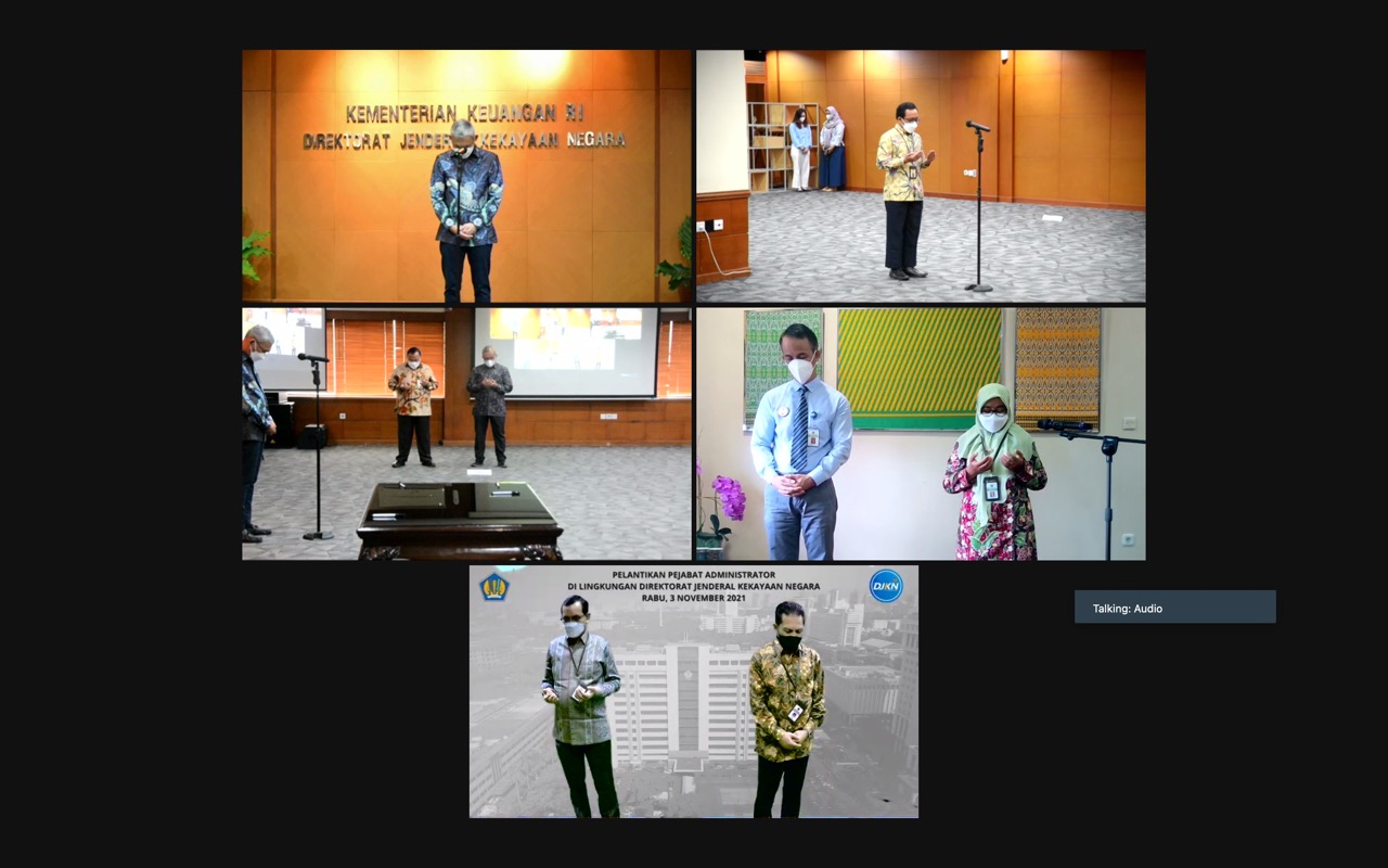 Jakarta – Direktur Jenderal Kekayaan Negara (Dirjen KN) Rionald Silaban mengatakan bahwa peningkatan sumber daya manusia yang unggul, berintegritas, dan berdaya saing merupakan satu dari enam fokus utama kebijakan Anggaran Pendapatan dan Belanja Negara (APBN) di tahun 2022. Salah satu langkah untuk mewujudkan hal tersebut adalah dengan menjadi Smart Aparatur Sipil Negara (ASN). Smart ASN merupakan pegawai dengan kompetensi, kinerja, serta profesionalisme yang tinggi sehingga mampu beradaptasi dan semakin responsif terhadap perubahan dan pencapaian tujuan organisasi. “Smart ASN menjadi jawaban dari prioritas pembangunan SDM serta grand design reformasi birokrasi nasional,” terangnya dalam pelantikan pejabat administrator di lingkungan Direktorat Jenderal Kekayaan Negara (DJKN) pada Rabu (3/11) secara daring.