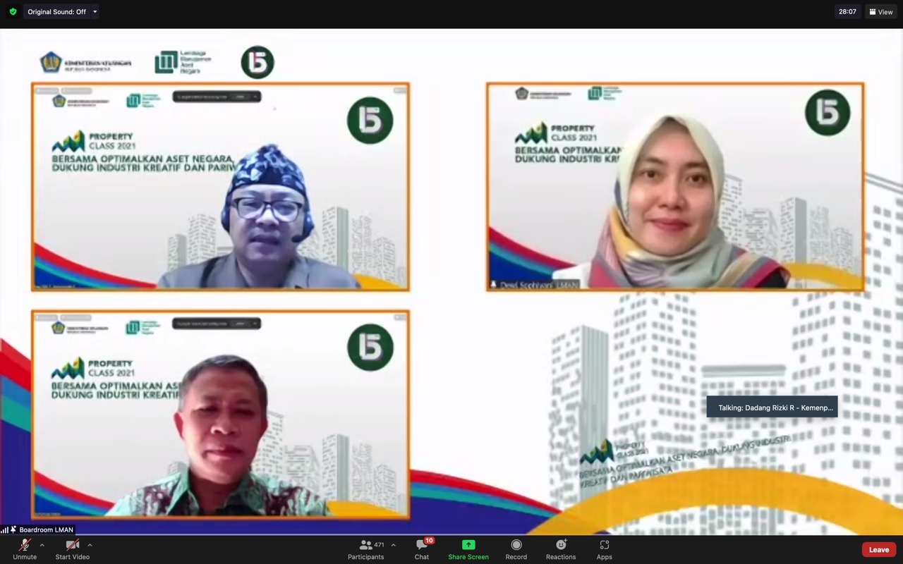 (Jakarta) Industri kreatif dan pariwisata merupakan sektor yang terdampak sangat signifikan dalam masa pandemi sepanjang hampir dua tahun ini. Pernyataan tersebut disampaikan Direktur Utama Lembaga Manajemen Aset Negara (LMAN) dalam kesempatan pembukaan Property Class 2021 yang digelar pada Rabu (03/11) secara daring. Acara rutin tahunan yang telah digelar LMAN sejak tahun 2018, pada tahun ini mengusung tajuk 'Bersama Optimalkan Aset Negara Dukung Industri Kreatif dan Pariwisata'. Menurut Basuki, penyelenggaraan acara ini sejalan dengan visi misi LMAN dalam mengupayakan langkah inovatif dan kreatif untuk mewujudkan optimalisasi aset Negara.