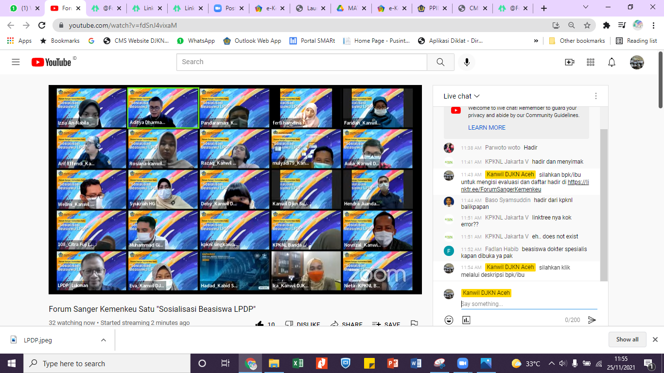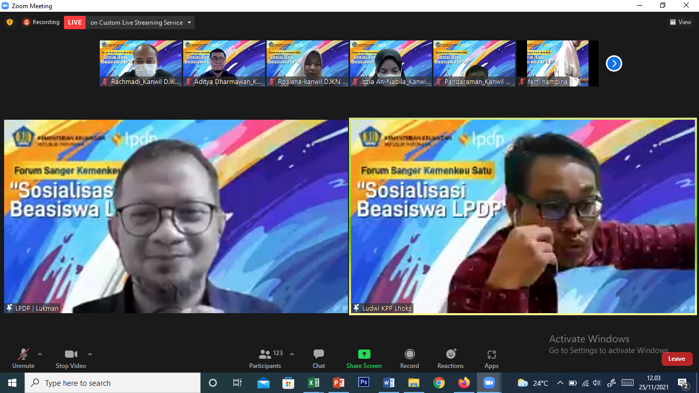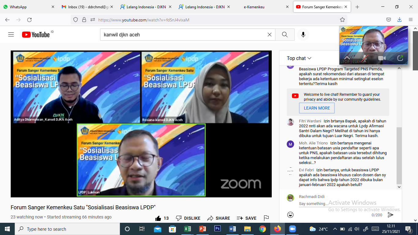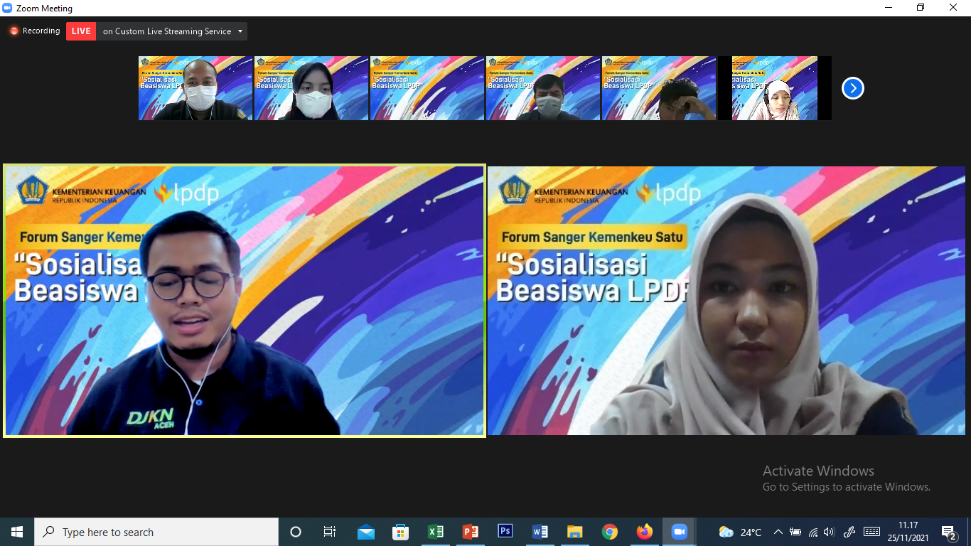 LPDP. Lebih dari 150 peserta hadir melalui kanal zoom dan youtube, dari Aceh