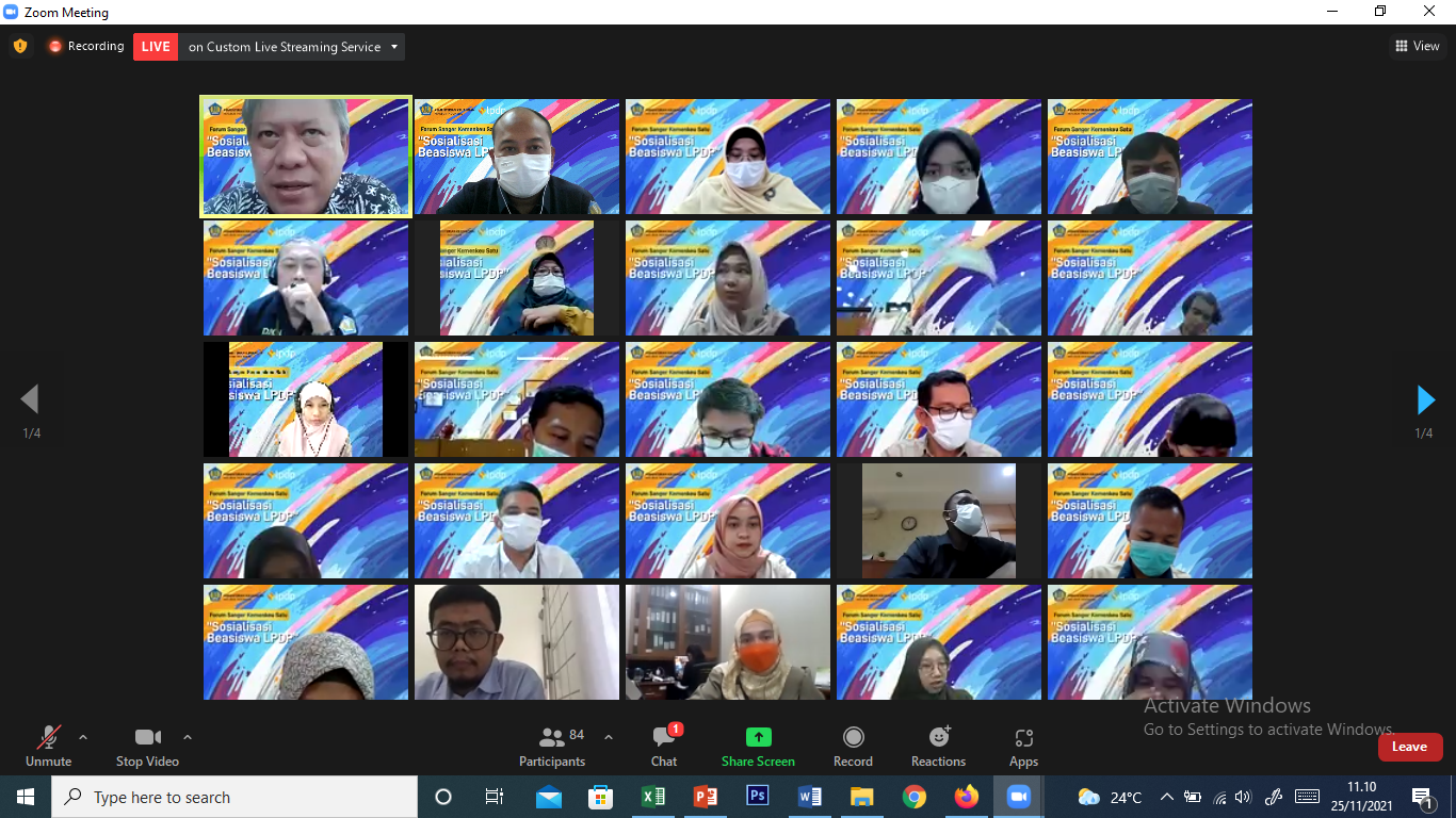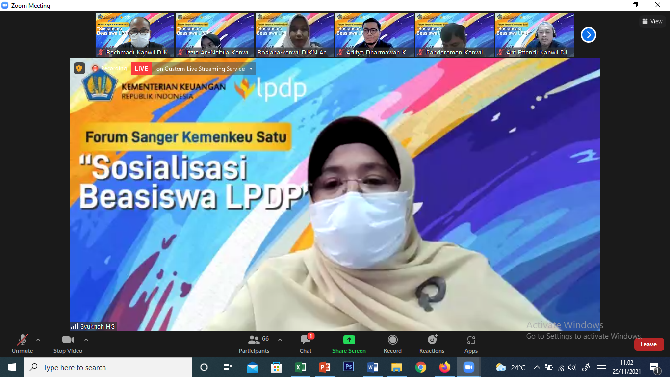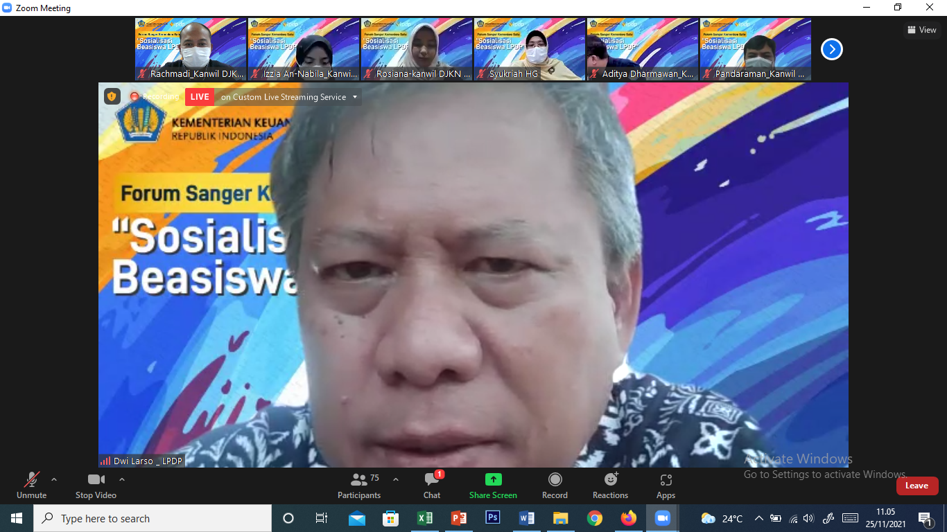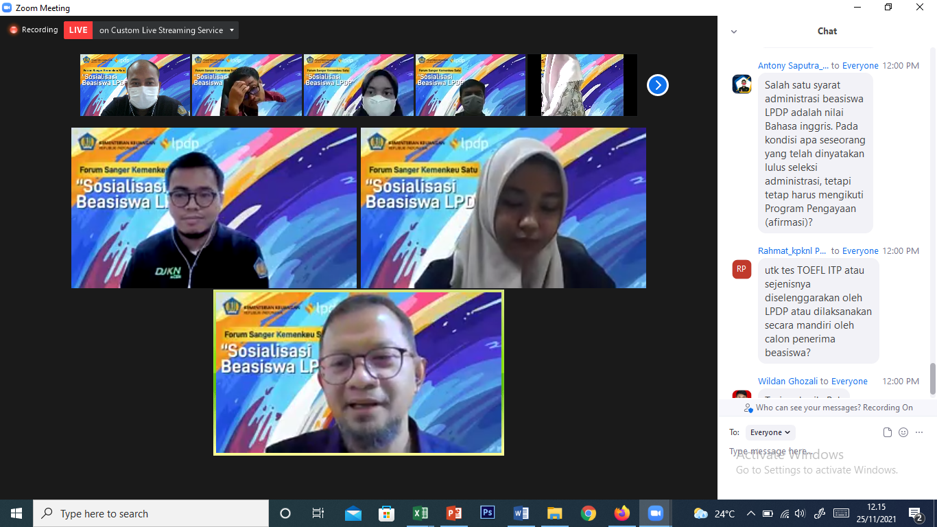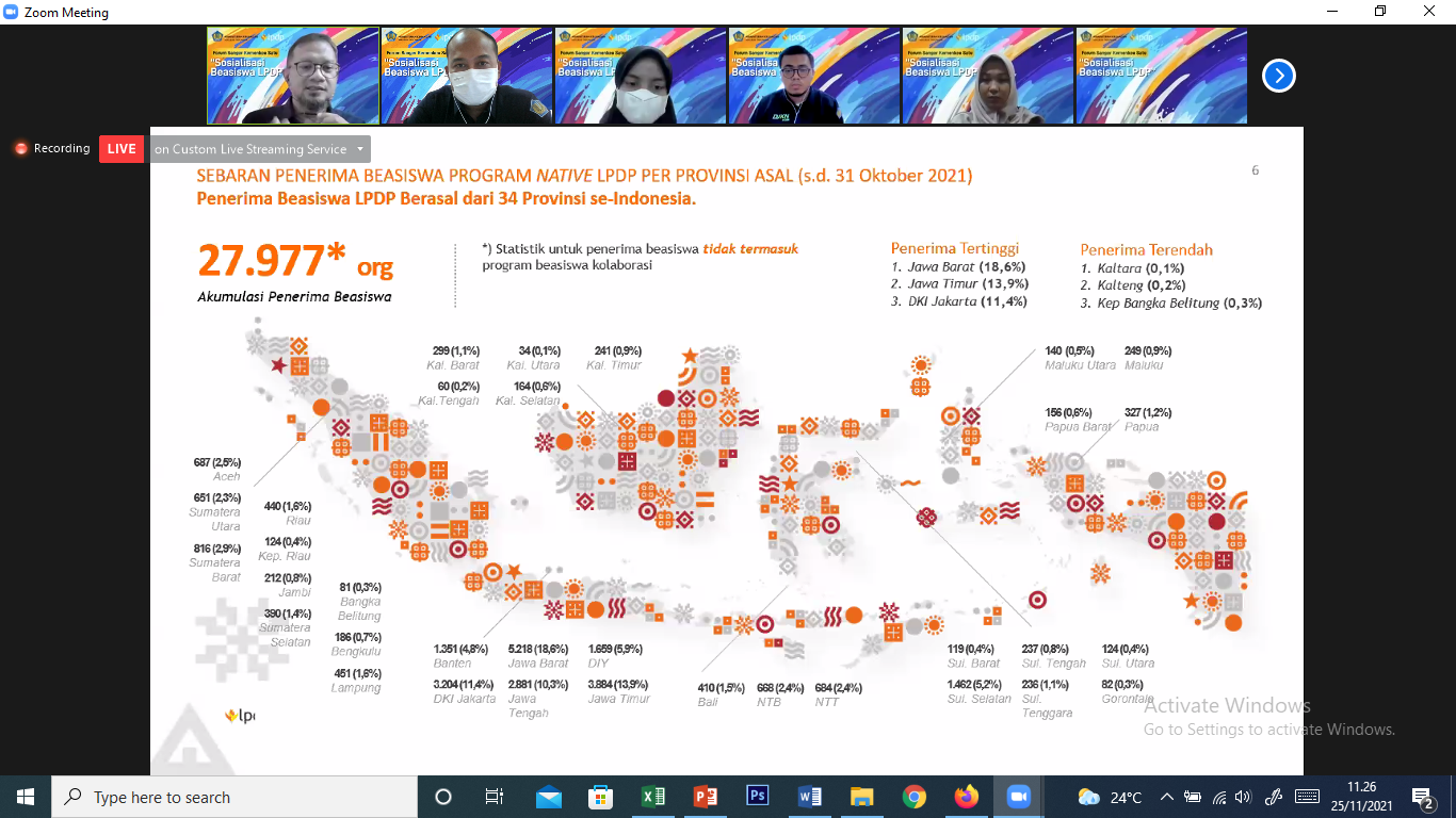 LPDP. Lebih dari 150 peserta hadir melalui kanal zoom dan youtube, dari Aceh