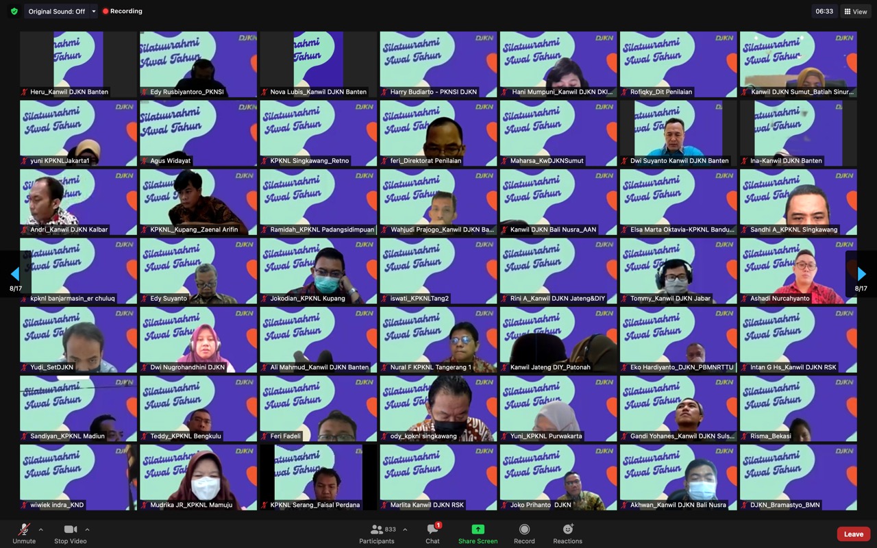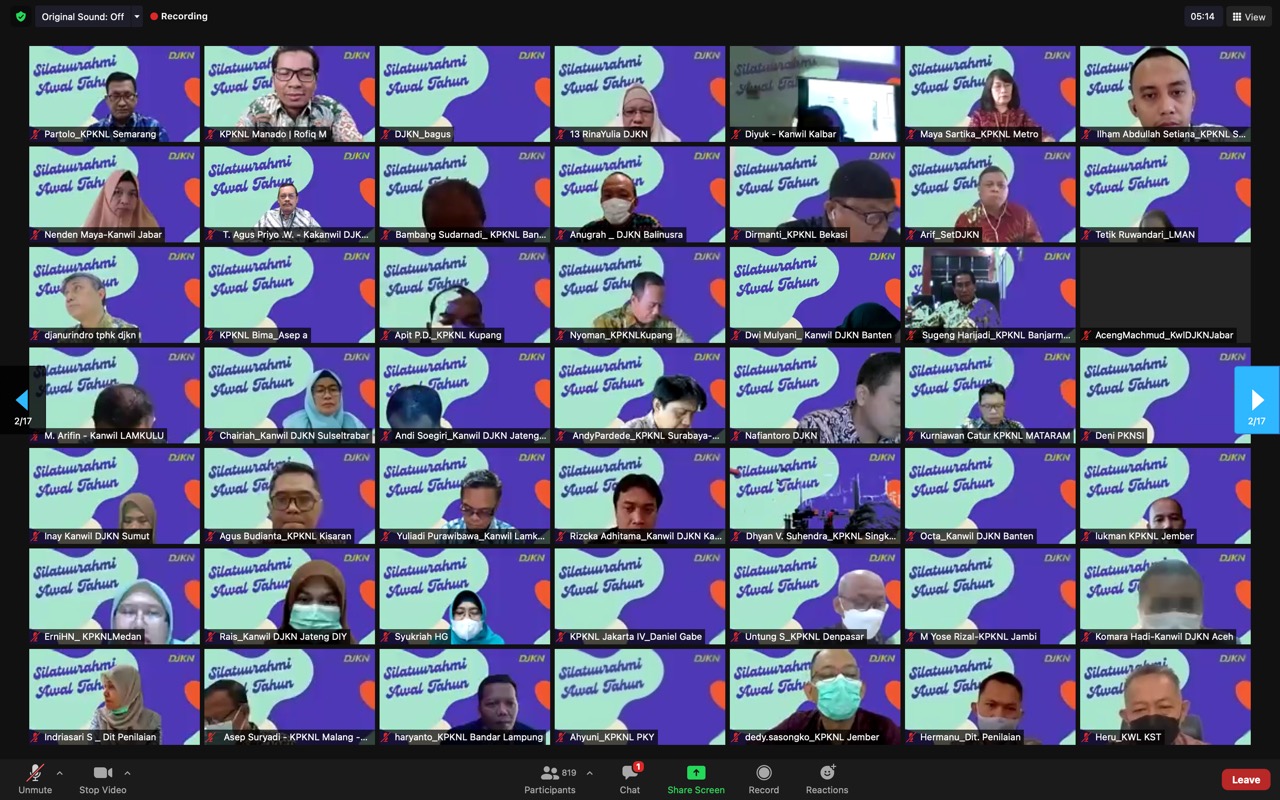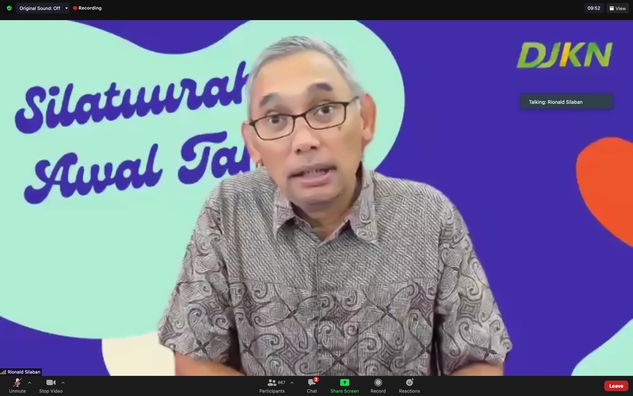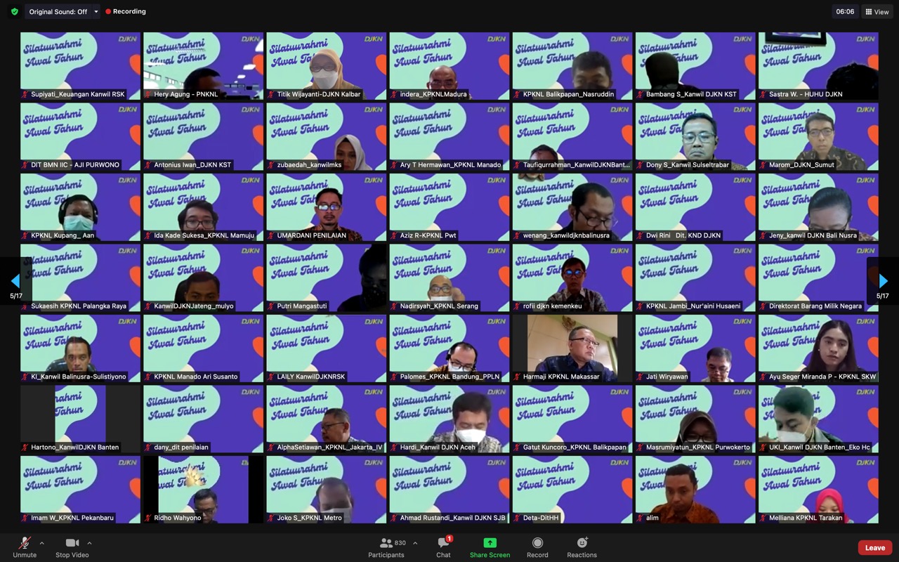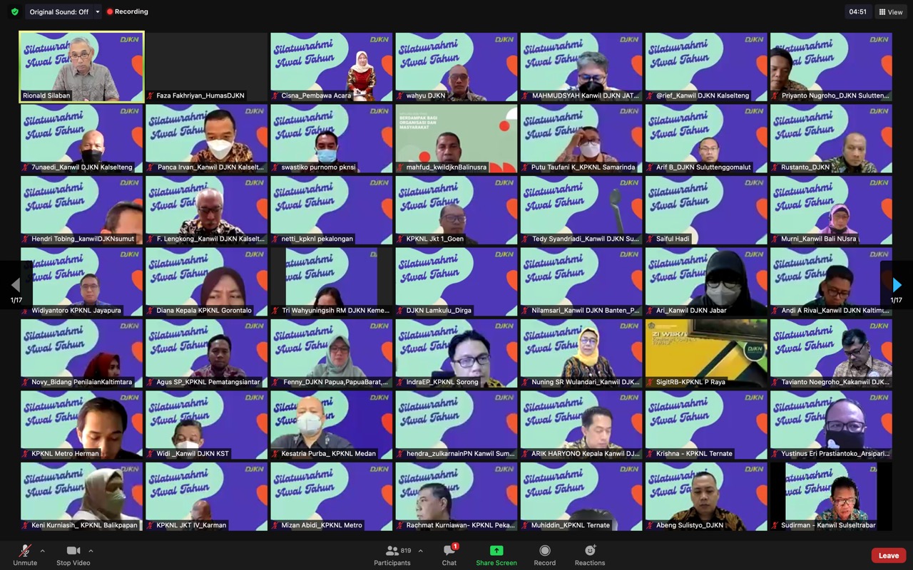 Jakarta – Direktorat Jenderal Kekayaan Negara (DJKN) menggelar kegiatan Silaturahmi Awal Tahun DJKN yang diadakan pada Selasa, (4/1) secara virtual dan diikuti oleh pejabat Kantor Pusat DJKN dan kantor vertikal DJKN dari seluruh Indonesia. Pada kegiatan tersebut, Direktur Jenderal Kekayaan Negara (Dirjen KN) Rionald Silaban menyampaikan bahwa sebagai sebuah organisasi di bawah Kementerian Keuangan, DJKN sudah semestinya terus berinovasi.