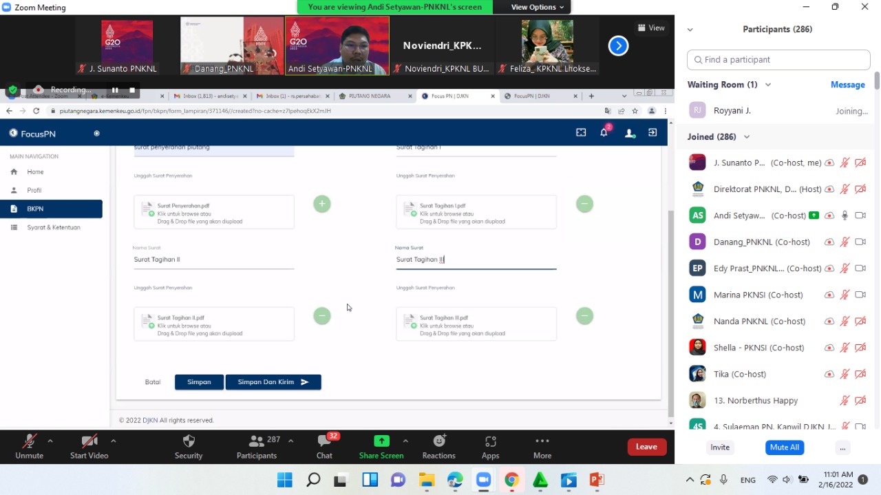 dokumen pengurusan Piutang Negara dan fitur Penyerahan BKPN Online. Pada