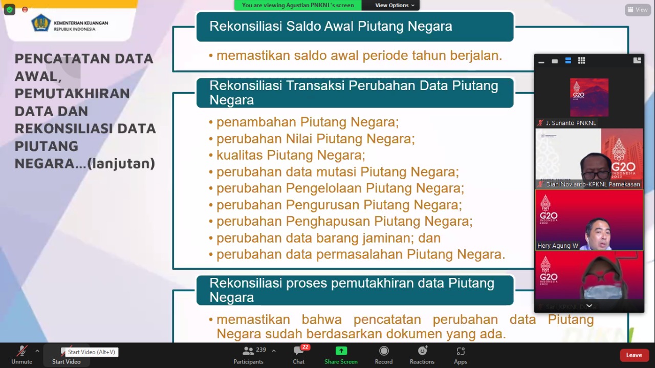 dan rekonsilasi data dengan DJKN.