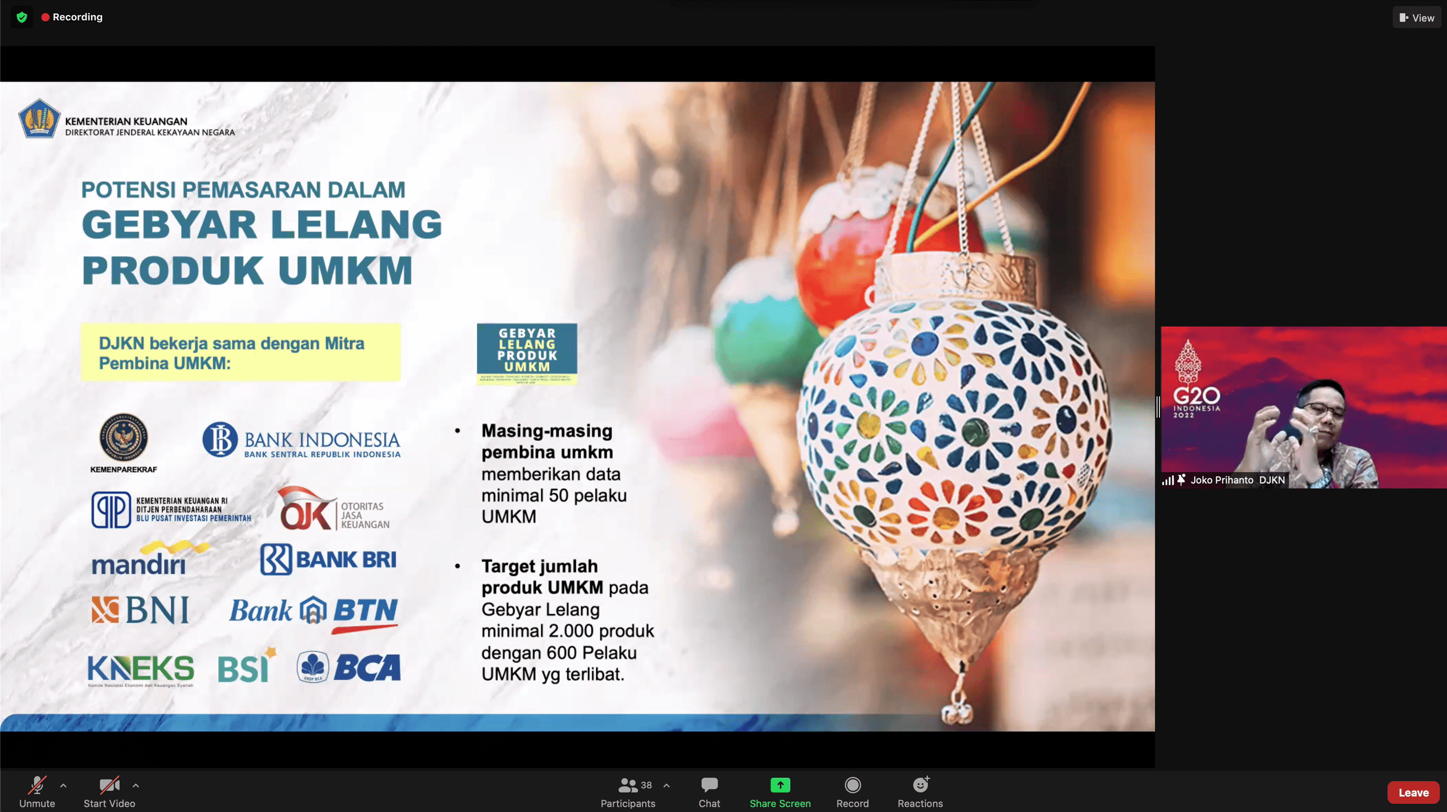 “Dari hasil survei, baru 17 persen pelaku UMKM (usaha mikro, kecil, dan menengah) yang memanfaatkan platform digital dalam memasarkan produknya,” ungkap Direktur Lelang Joko Prihanto membuka acara Bincang Santai dengan pewarta yang diadakan secara daring pada Jumat (18/02). Menurutnya, itu menandakan bahwa masih banyak hal yang perlu dilakukan untuk mengedukasi mayoritas pelaku UMKM agar mampu mengoptimalkan teknologi digital untuk memperluas jangkauan pemasaran produknya.