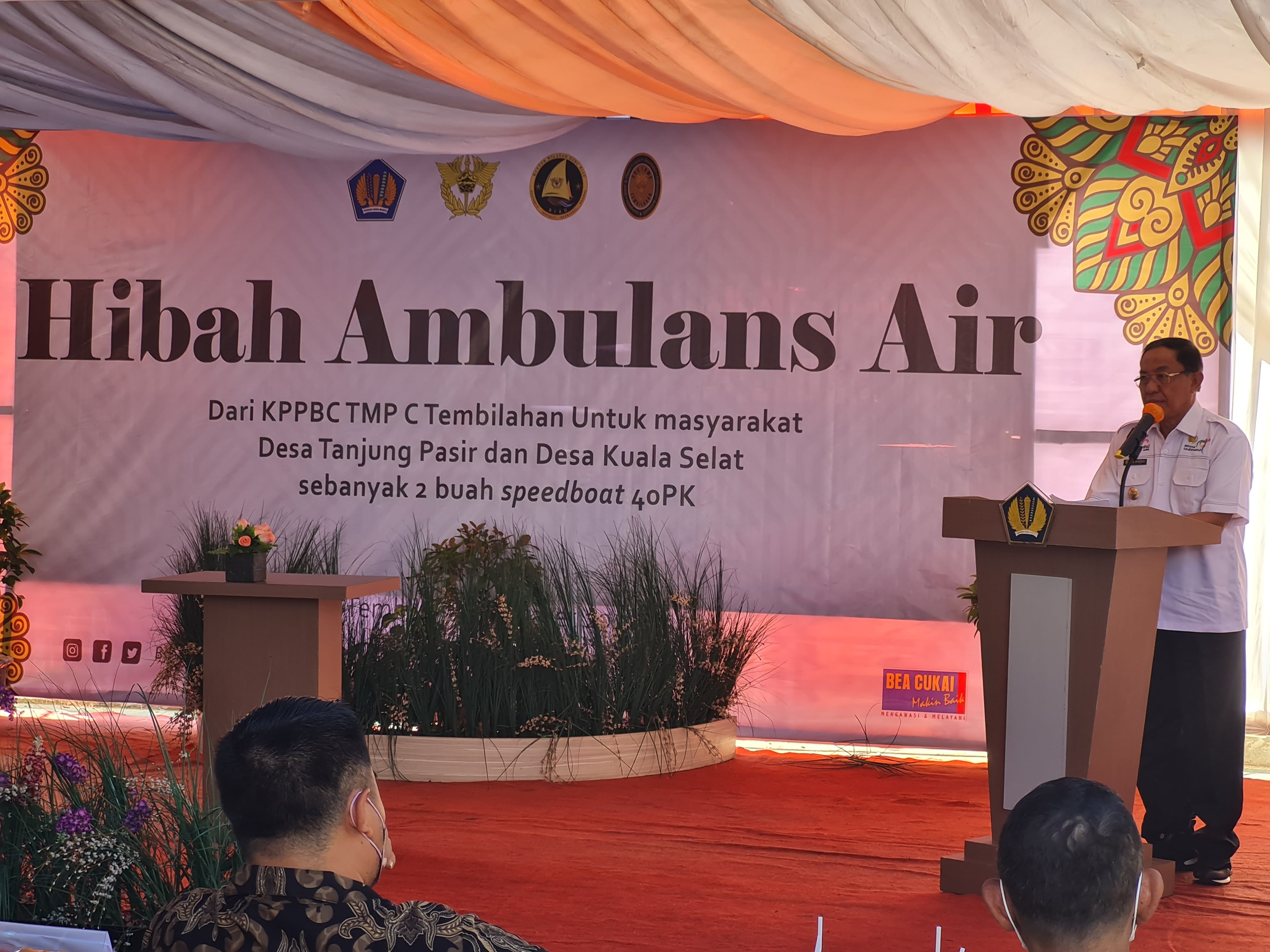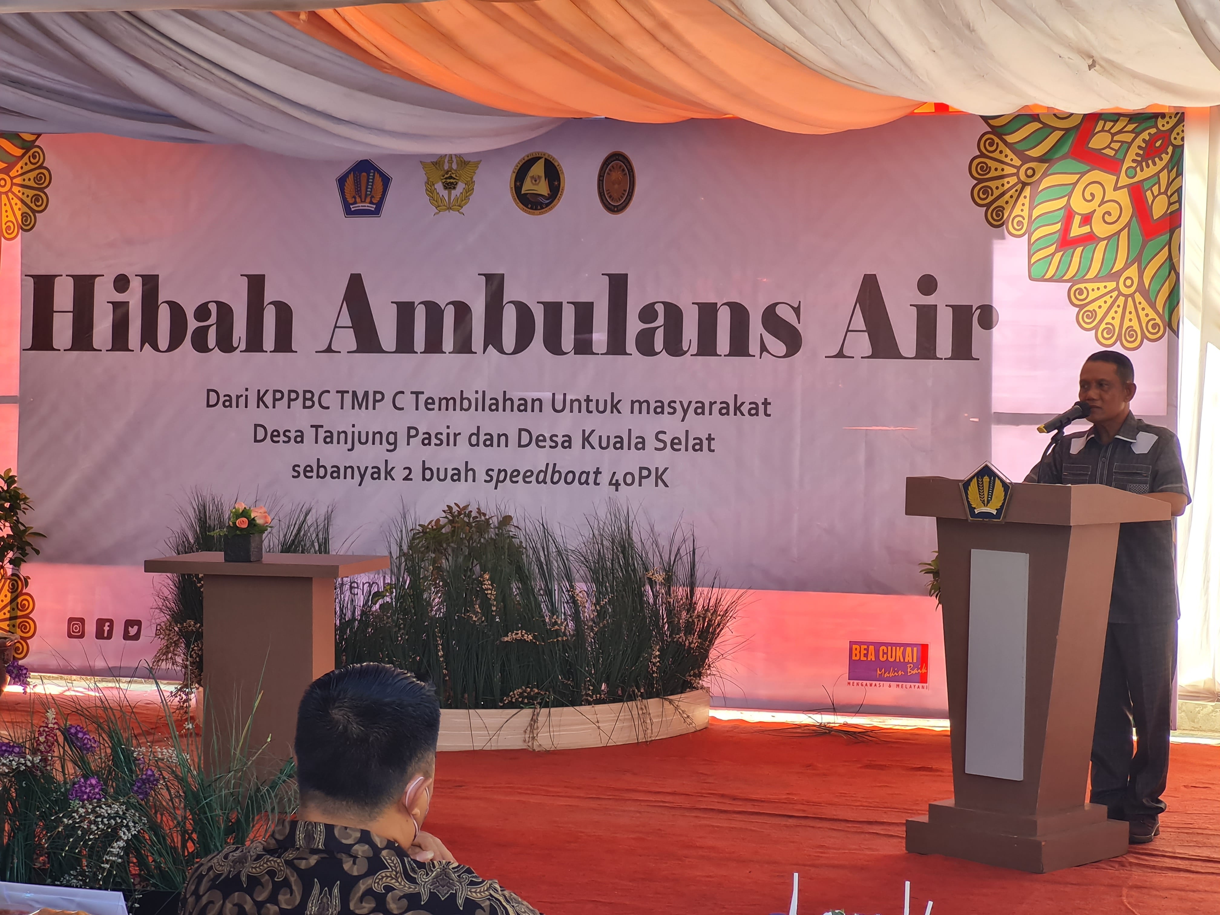 Tindaklanjuti Persetujuan Hibah KPKNL Pekanbaru, KPPBC Tembilahan Serahkan Speedboat Ambulans Untuk Masyarakat Pesisir Indragiri Hilir