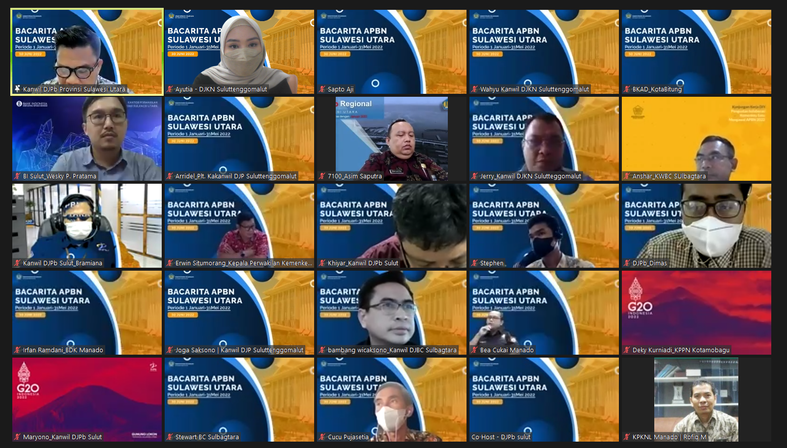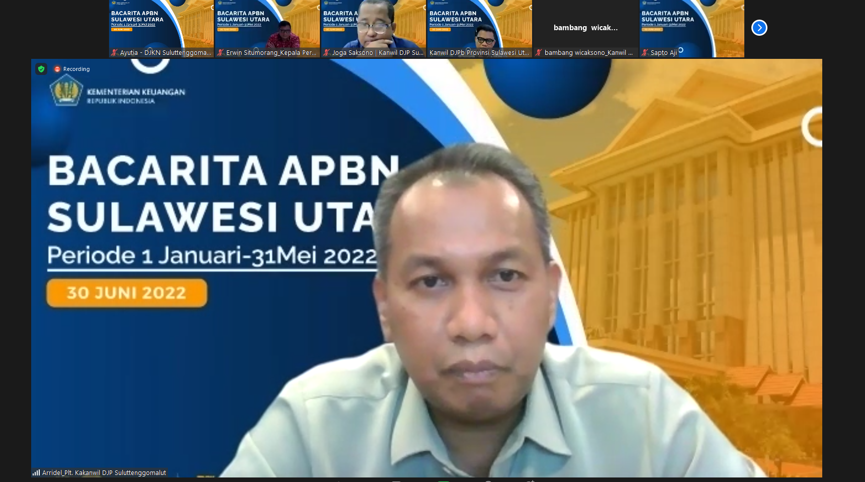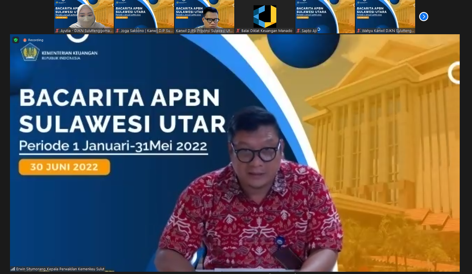 Provinsi Sulut Periode 1 Januari – 31 Mei 2022 pada Kamis (30/6) secara daring.