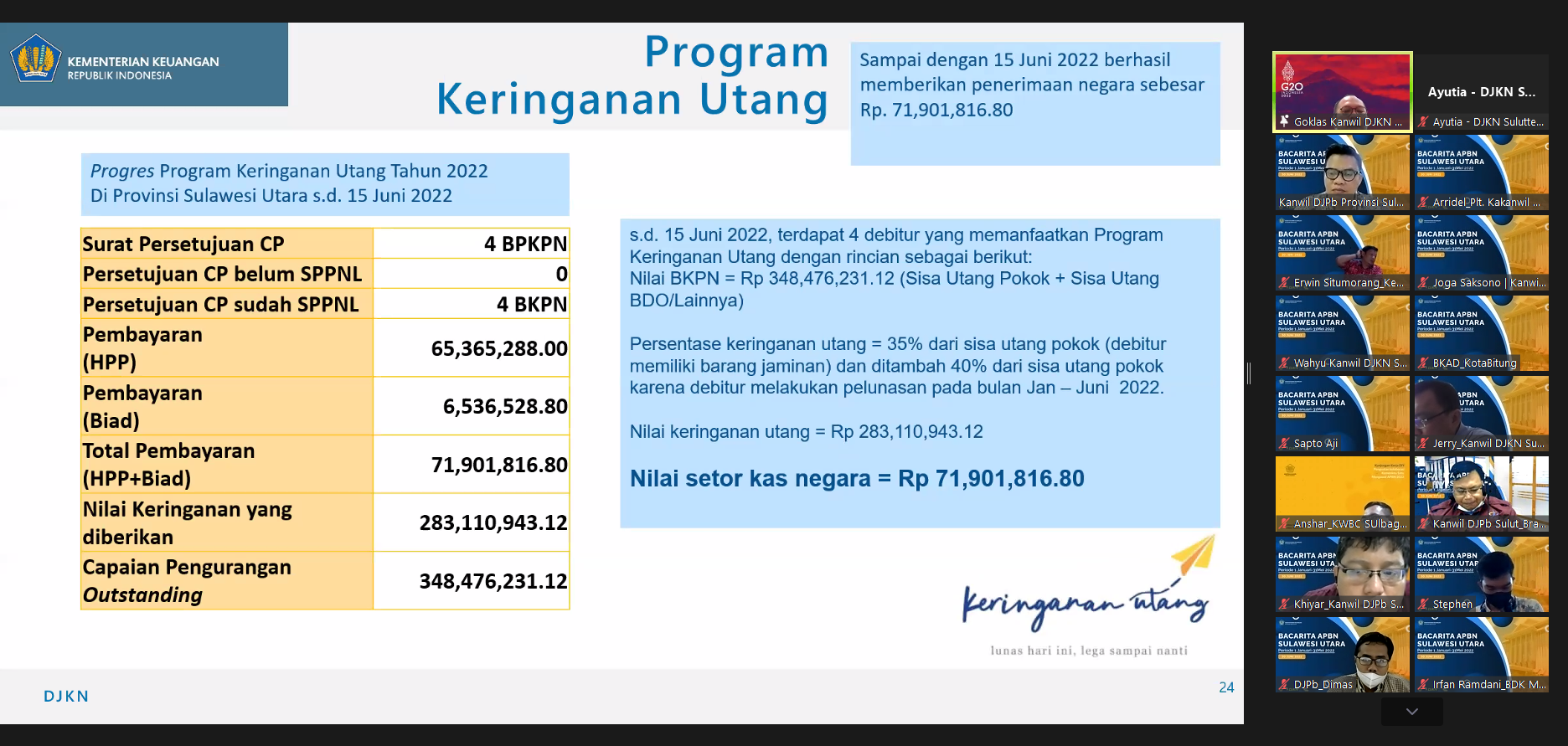 realisasi Program Keringanan Utang Tahun 2022 yang diusung oleh DJKN.