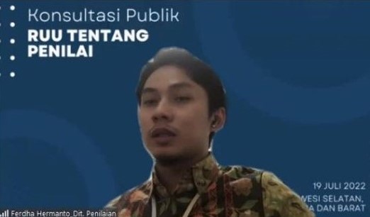 Direktorat Penilaian DJKN Ferdha Hermanto mempresentasikan draft RUU Penilai.