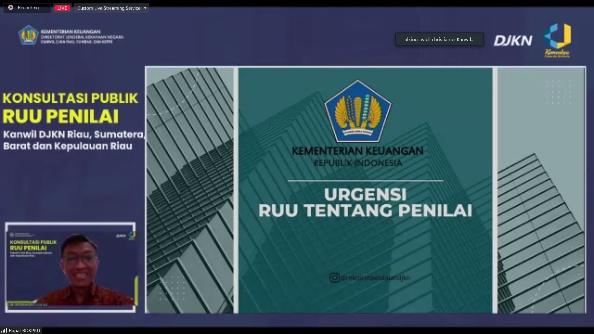 zoom meeting bekerja sama dengan Balai Diklat Keuangan Pekanbaru, pada Selasa,
