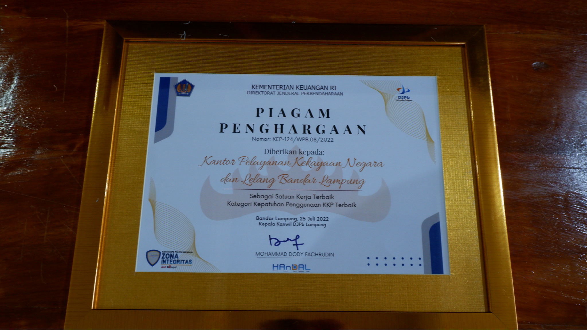 (KPKNL) Bandar Lampung meraih dua penghargaan dari Kanwil Direktorat Jenderal
