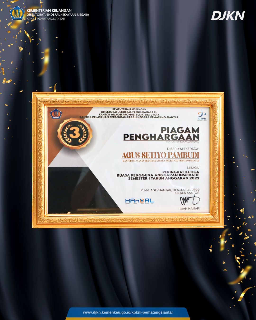 KPKNL Pematang Siantar mengucapkan terima kasih atas penghargaan yang telah