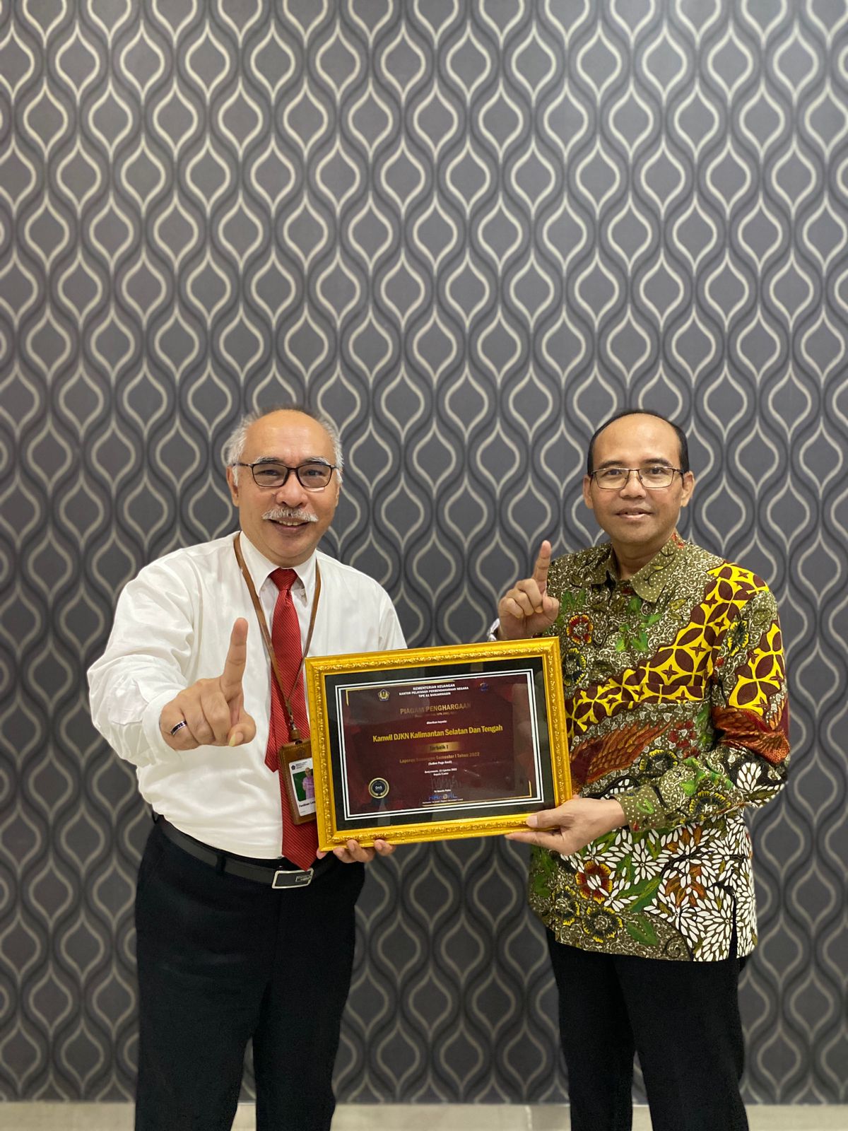penghargaan tersebut dari Kepala Kantor Pelayanan Perbendaharaan Negara Tipe A1