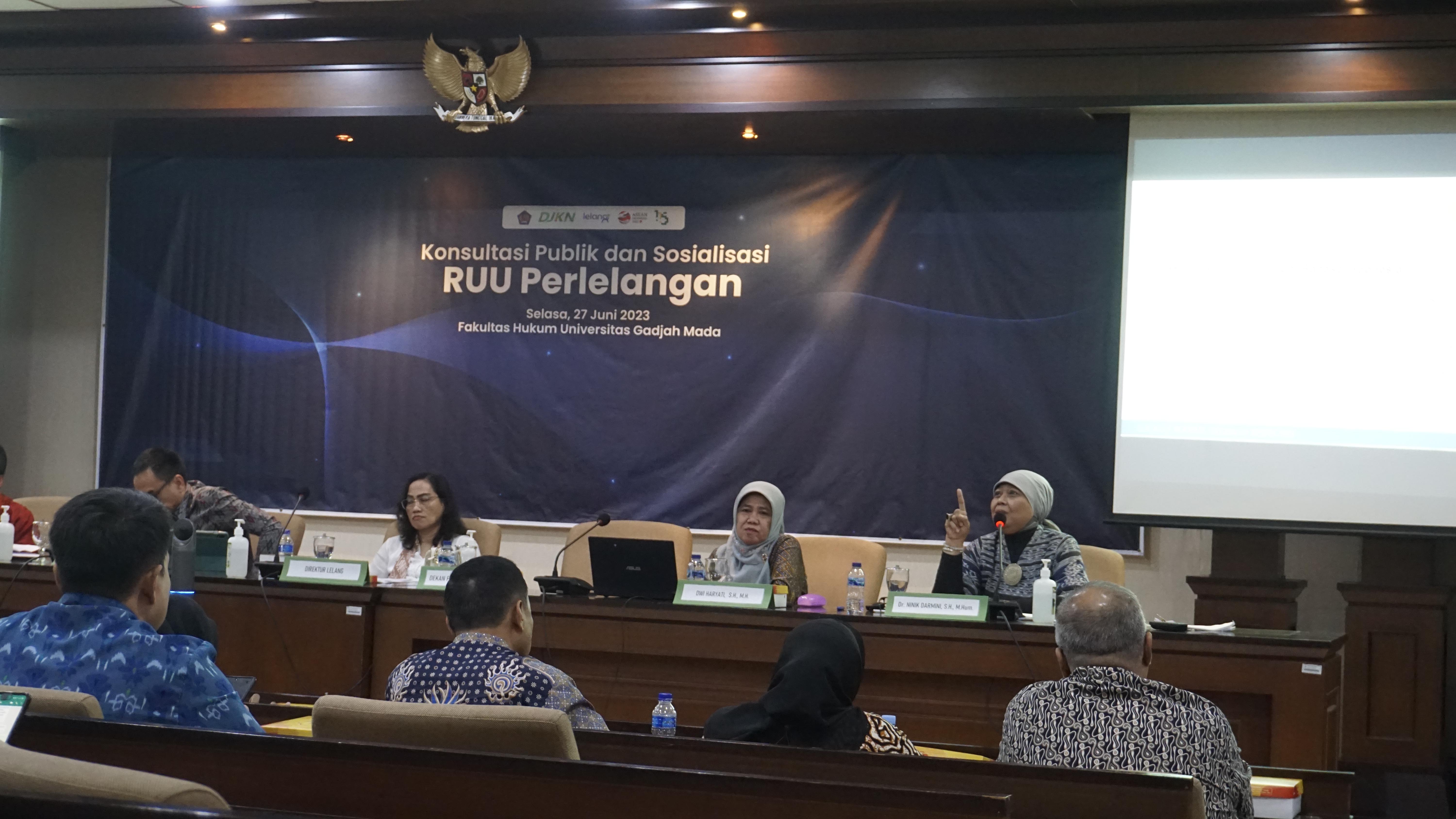 Kegiatan dibuka oleh sambutan dari Dekan Fakultas Hukum UGM yang diwakili oleh Ketua Partnership and Development Unit FH UGM Andika Putra, serta disampaikan bahwa terdapat urgensi dalam penyusunan RUU Perlelangan seperti perkembangan teknologi serta terdapat harapan dari adanya kegiatan Konsultasi Publik yakni untuk berbagi pengalaman dan pengetahuan serta memantik ide-ide yang bermanfaat dalam penyusunan RUU Perlelangan.