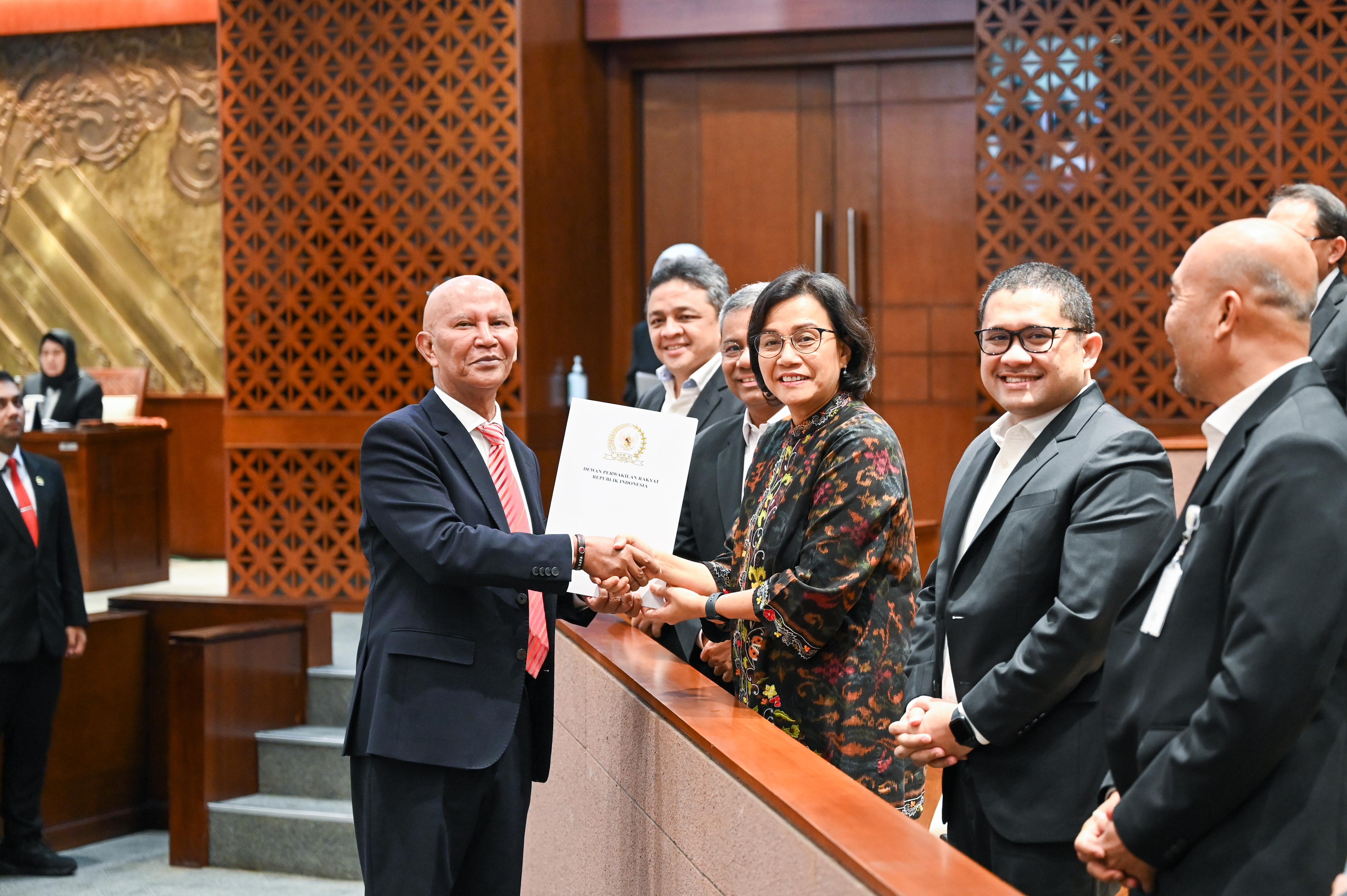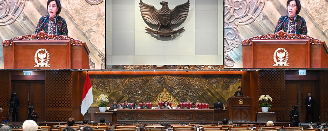 Jakarta, (22/09/2023) - Pemerintah dan Anggota DPR RI telah mencapai kesepakatan bahwa APBN tahun 2024 harus tetap menjadi instrumen kebijakan yang dapat diandalkan. Hal ini disampaikan oleh Menteri Keuangan, Sri Mulyani Indrawati, pada penyampaian Pendapat Akhir Pemerintah terhadap Rancangan Undang-Undang Anggaran Pendapatan dan Belanja Negara 2024 ini dalam Rapat Paripurna DPR RI pada tanggal 21 September 2023 di Jakarta.
