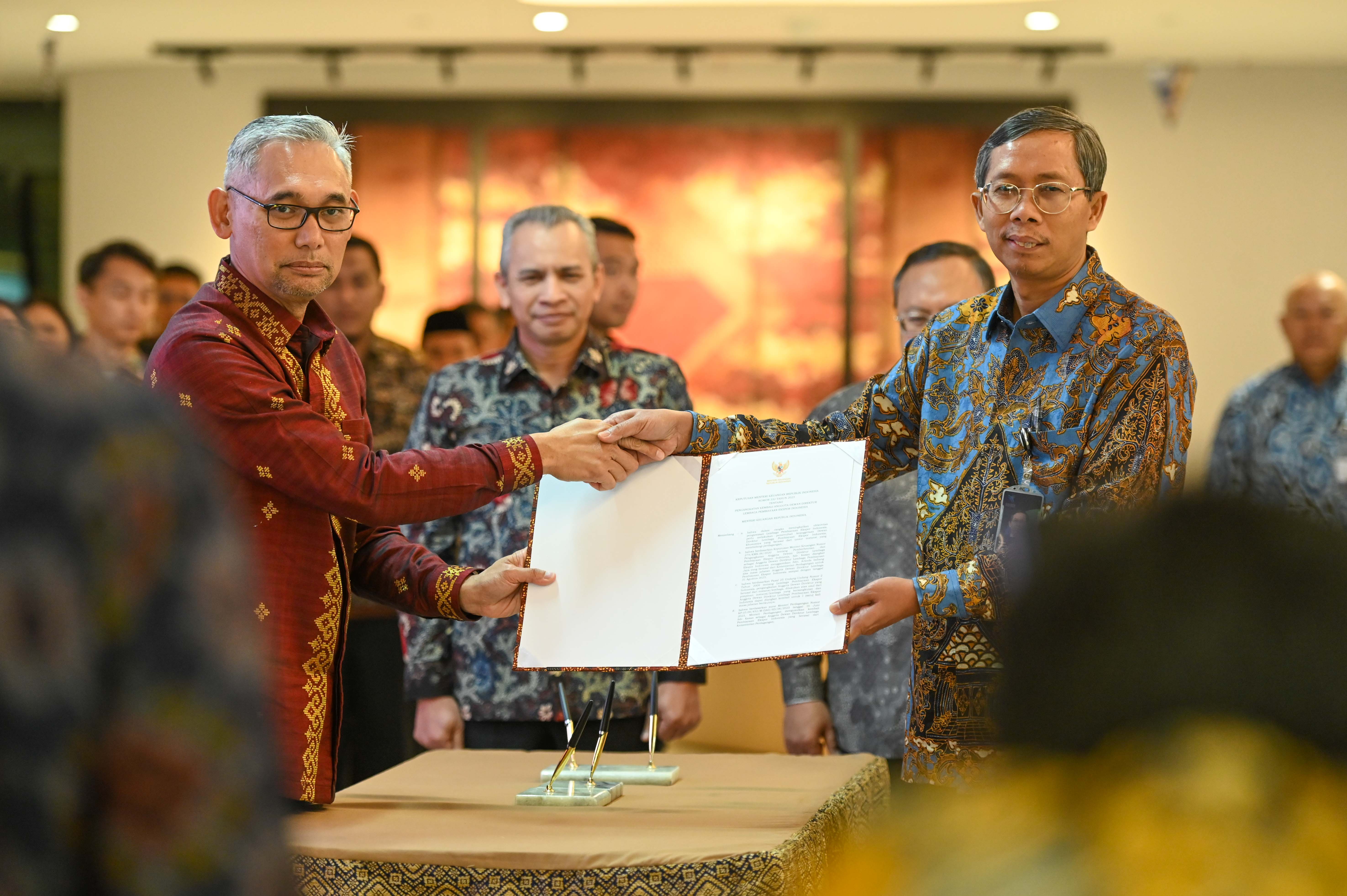 dilantik, Suminto dan Kasan sebagai Anggota Dewan Direktur LPEI, Faaris Pranawa