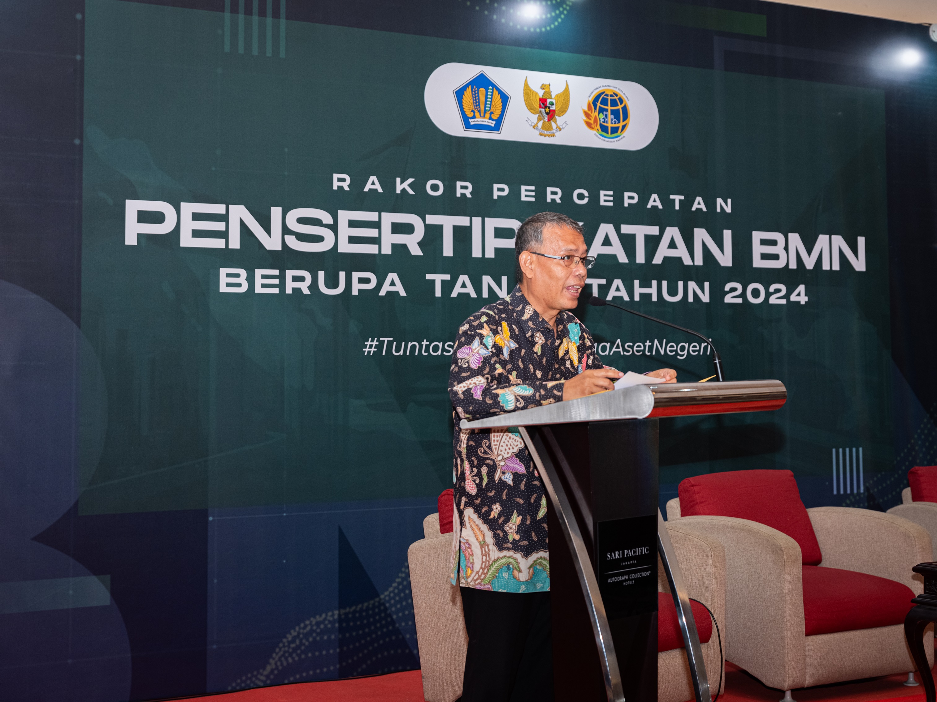 JAKARTA - Direktur Jenderal Kekayaan Negara (Dirjen KN) Rionald Silaban mengucapkan apresiasi kepada seluruh jajaran Kementerian ATR/BPN, Kementerian/Lembaga, dan seluruh unit vertikal Direktorat Jenderal Kekayaan Negara (DJKN) atas capaian 61.094 NUP tanah yang tersertifikasi di tahun 2023. Hal ini disampaikannya saat pembukaan Rapat Koordinasi Program Percepatan Pensertipikatan BMN Berupa Tanah Tahun Anggaran 2024 pada Kamis (22/2).