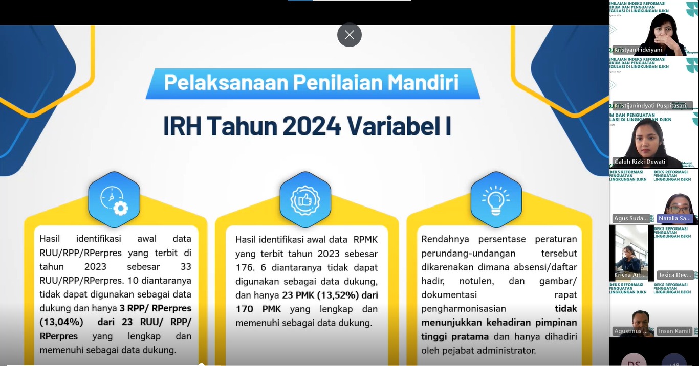 Direktorat Hukum dan Humas Gelar Rapat Penilaian Indeks Reformasi Hukum dan Penguatan Regulasi