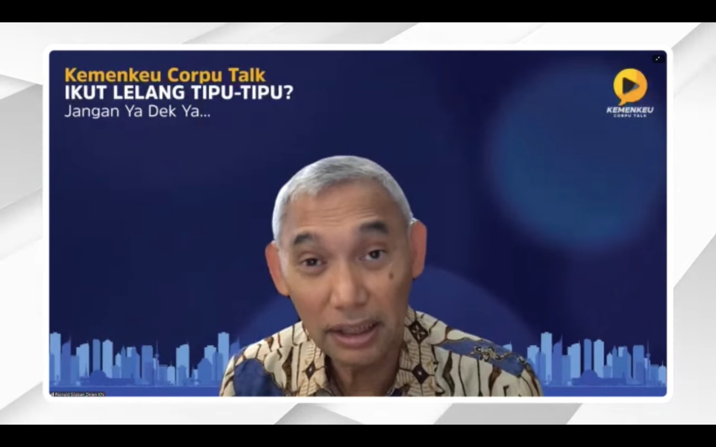Webinar yang terselenggara atas inisiatif bersama Kantor Wilayah (Kanwil) DJKN DKI Jakarta dan Kanwil DJKN Banten bekerja sama dengan Pusdiklat Kekayaan Negara dan Perimbangan Keuangan (KNPK), BPPK Kementerian Keuangan ini menghadirkan dua narasumber dengan moderator Rachmatunnisya, Widyaiswara Ahli Madya pada Pusdiklat KNPK.