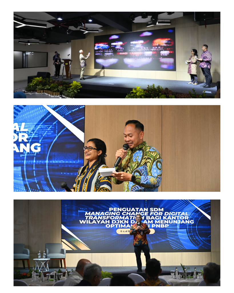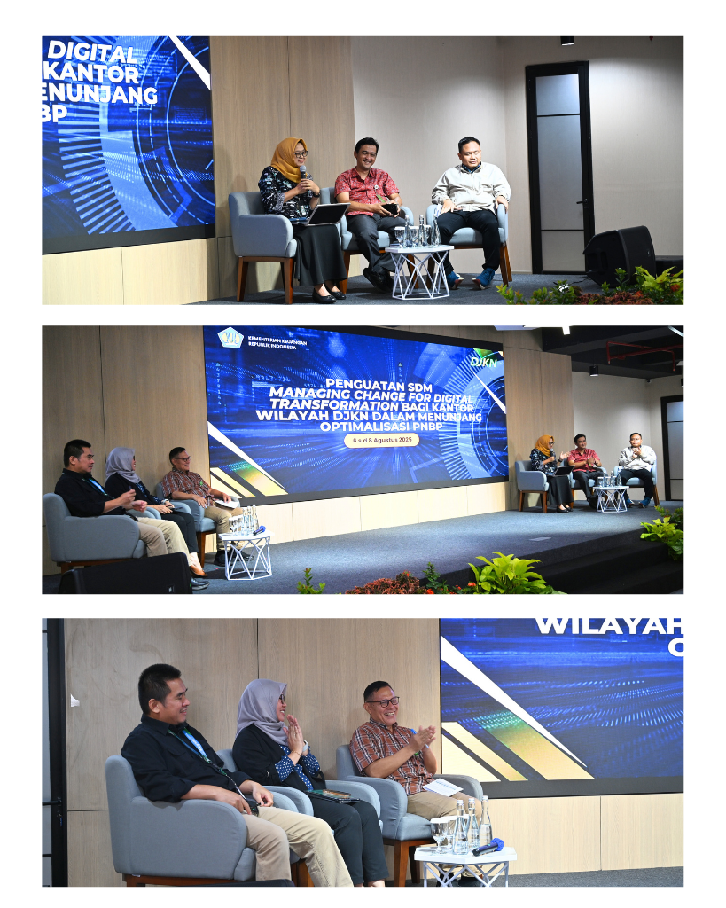 Jakarta, 8 Agustus 2025 - Direktorat Jenderal Kekayaan Negara (DJKN) terus mendorong percepatan transformasi digital dan penguatan tata kelola organisasi melalui kegiatan bertajuk Penguatan SDM Managing Change for Digital Transformation Bagi Kantor Wilayah DJKN dalam Menunjang Optimalisasi PNBP. Kegiatan ini dilaksanakan pada 6–8 Agustus 2025 bertempat di Aula 2 Lembaga National Single Window, Jakarta, dan dihadiri oleh para Kepala Kanwil DJKN, pejabat eselon II di lingkungan DJKN, serta para Change Agent Duta Transformasi DJKN dan SMV.