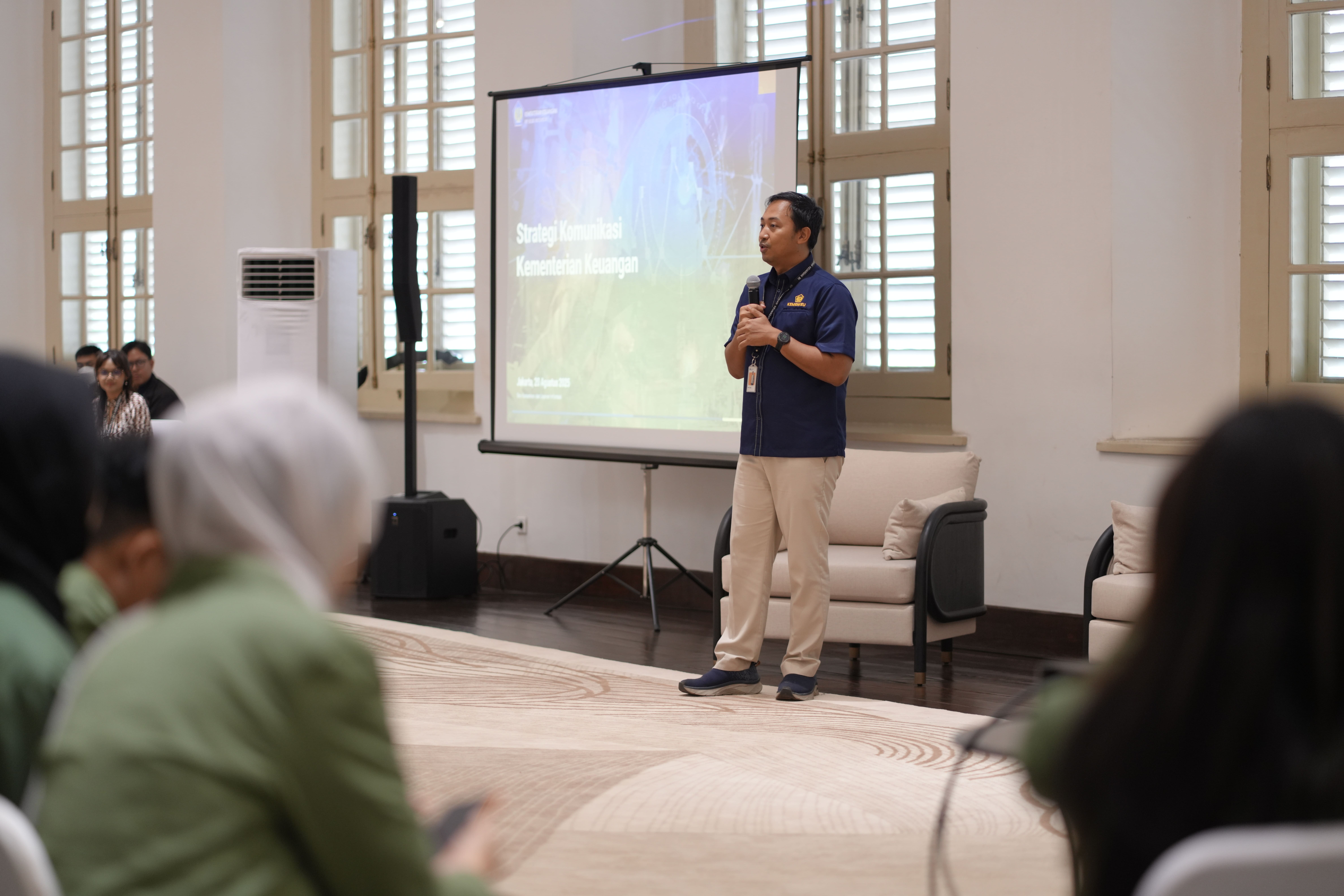 Pada sesi materi, mahasiswa mendapatkan paparan dari beberapa narasumber. Nico Aditia, Kepala Subbagian Riset dan Audit Biro Komunikasi dan Layanan Informasi Sekretariat Jenderal Kemenkeu, menyampaikan materi tentang Strategi Komunikasi sehingga pesan Kemenkeu Tepercaya bisa diterima dengan baik dan meningkatkan partisipasi masyarakat.
