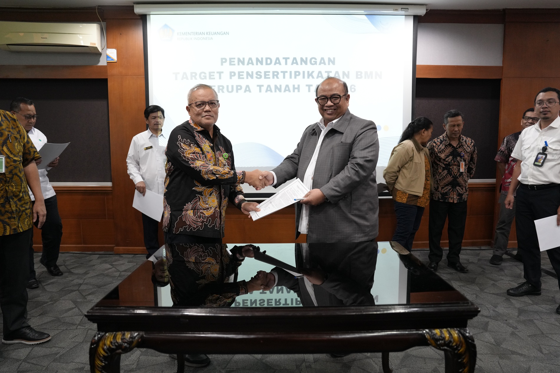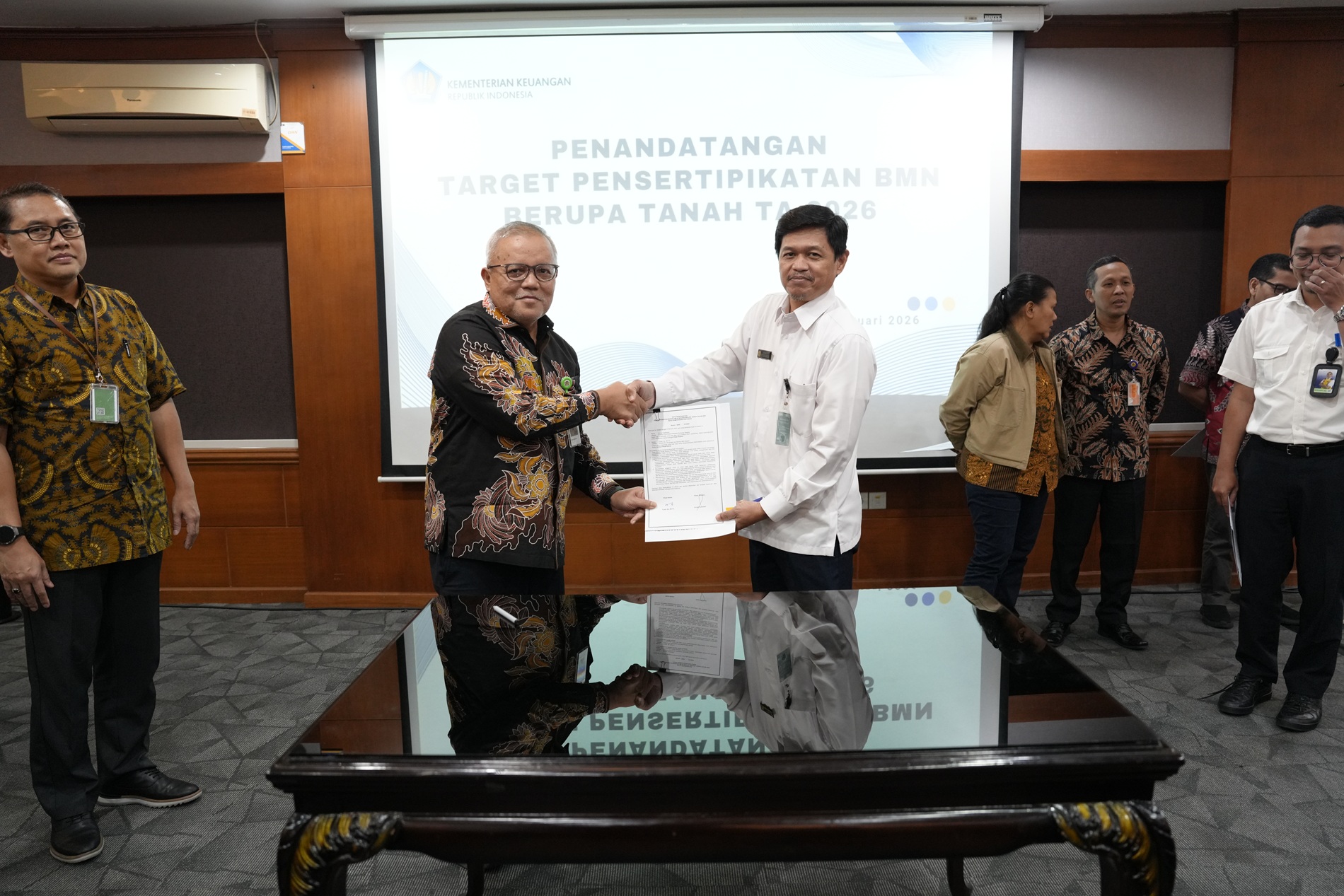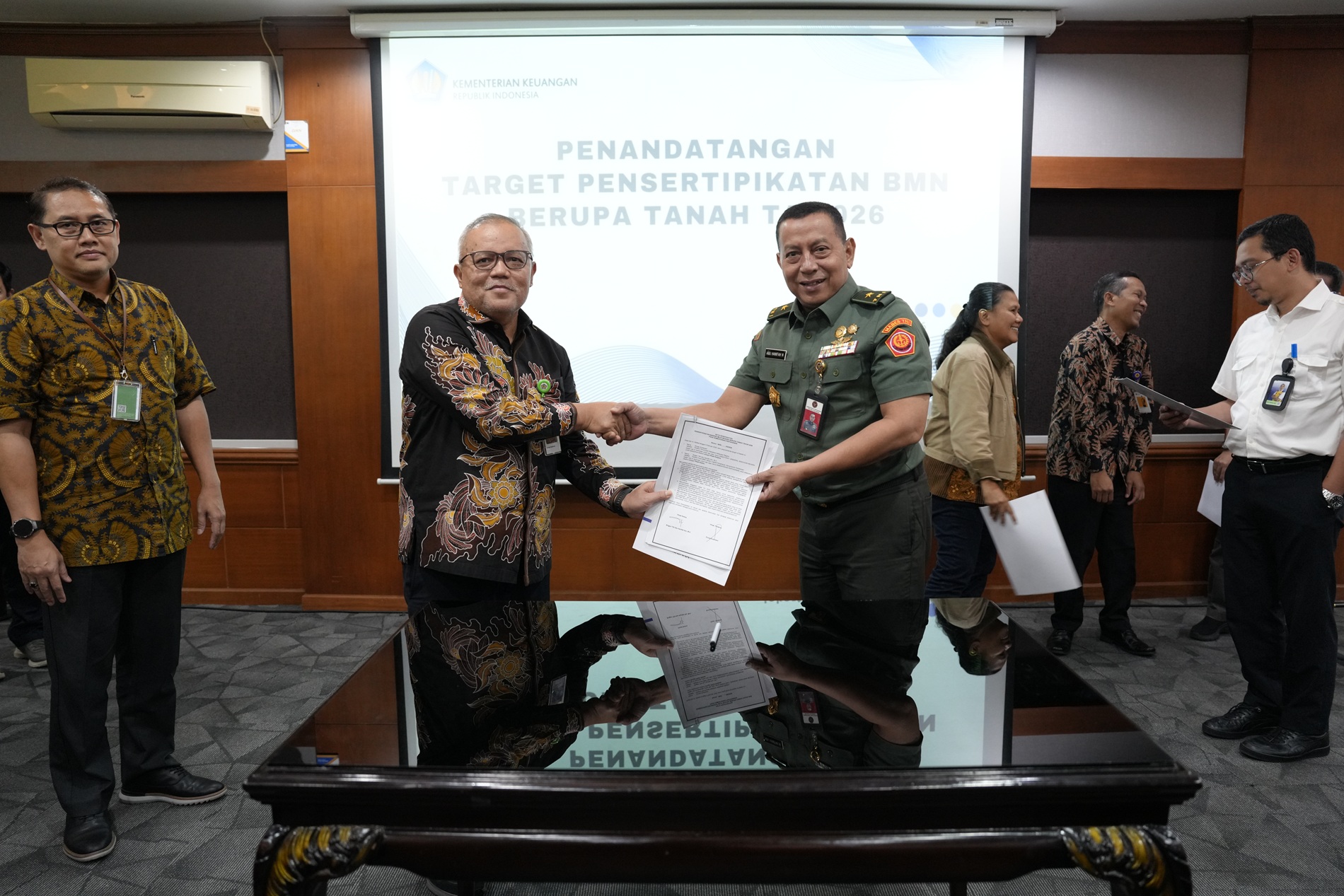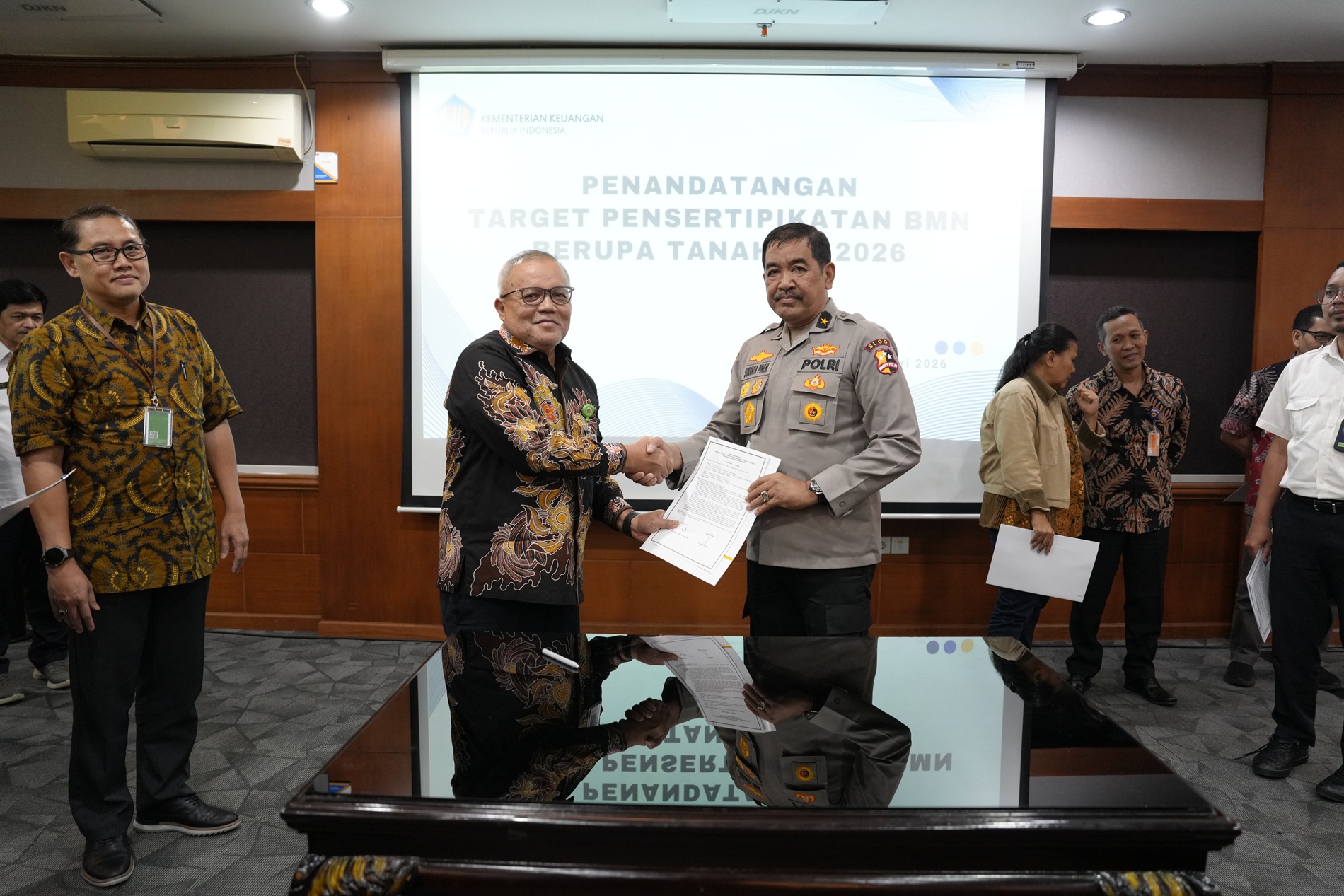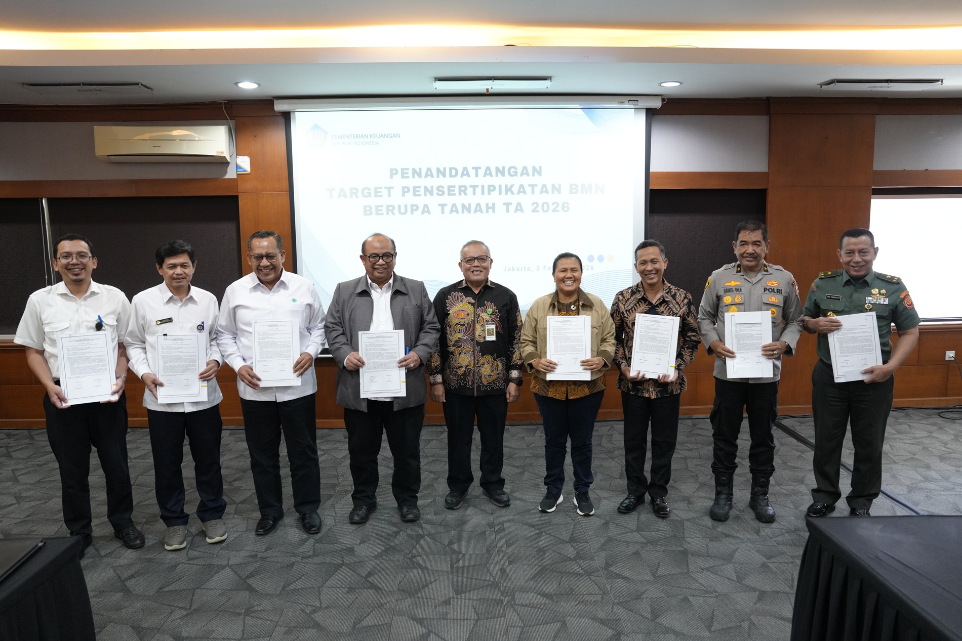 Upaya percepatan ini didukung penuh oleh delapan Kementerian/Lembaga (K/L) yang mengelola hingga 83,57?ri total BMN berupa tanah secara nasional. Kedelapan instansi tersebut yakni Kementerian Pekerjaan Umum, Kementerian Perhubungan, Kementerian Pertahanan, Kepolisian Negara RI, Kementerian Pertanian, Kementerian Agama, Kementerian Diktisaintek, dan Kementerian Keuangan, secara bersama-sama menyatakan komitmennya untuk menuntaskan target sertifikasi tanah demi kepentingan bangsa dan negara. (kk/hy/da)