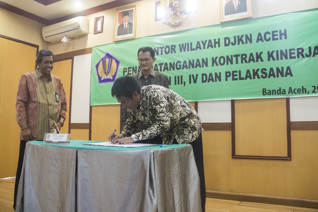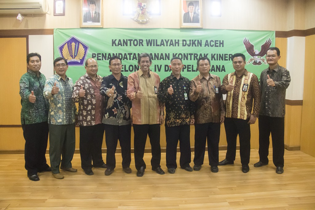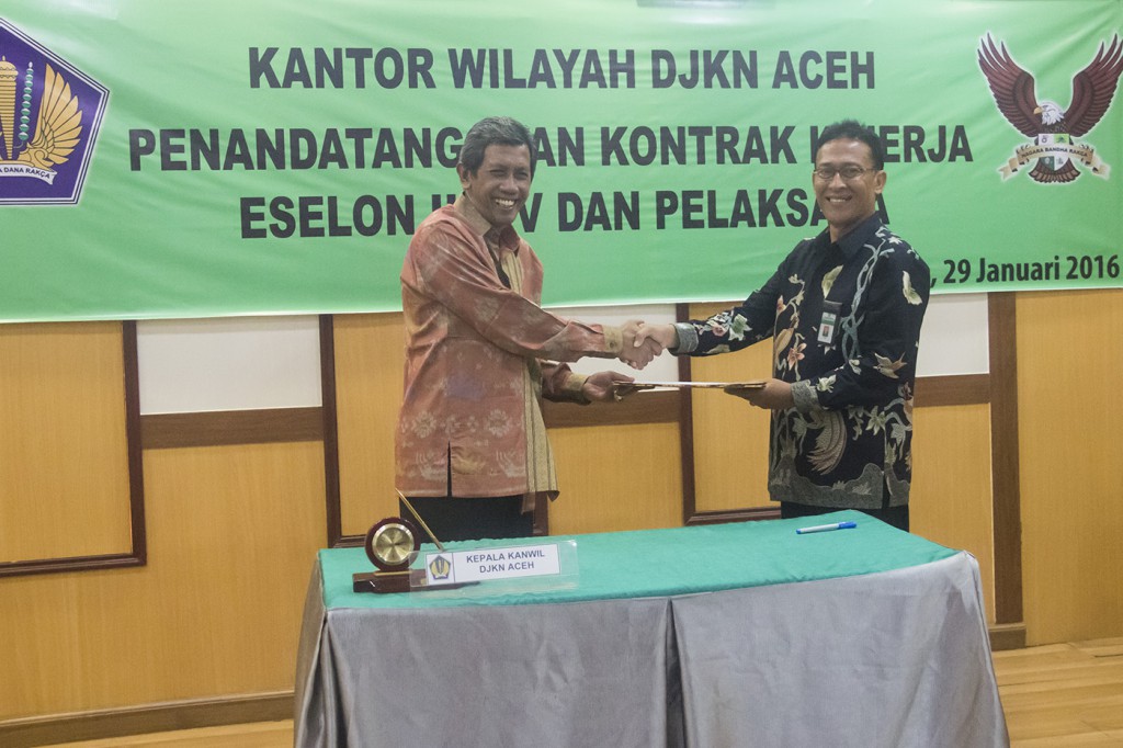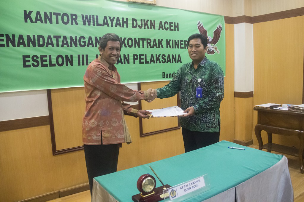 Kegiatan penandatanganan kontrak kinerja yang merupakan bentuk gentlemen agreement, pertama kali dilakukan oleh Kepala Bagian Umum, Andi Soegiri, yang dilanjutkan secara berturut-turut oleh Nofiansyah sebagai Kepala Bidang Pengelolaan Kekayaan Negara, Kepala Bidang Penilaian, Mardhanus Riyanto, Kepala Bidang Piutang Negara, Gatot Muharto, Kepala Bidang Lelang, Dirmanti, Kepala Bidang Kepatuhan Internal Hukum dan Informasi, T. Uzir serta Kepala KPKNL Banda Aceh, Aceh Hadinata dan Kepala KPKNL Lhokseumawe, Muhammad Joni.