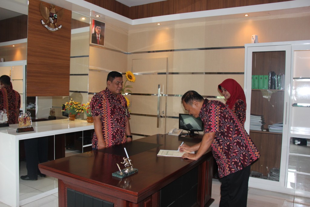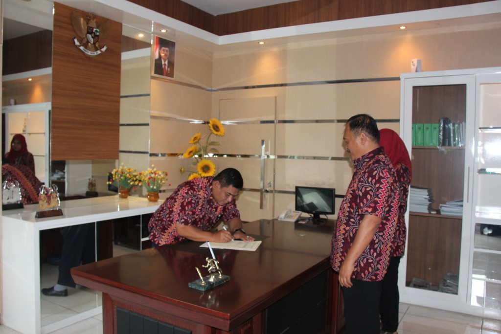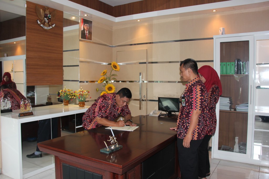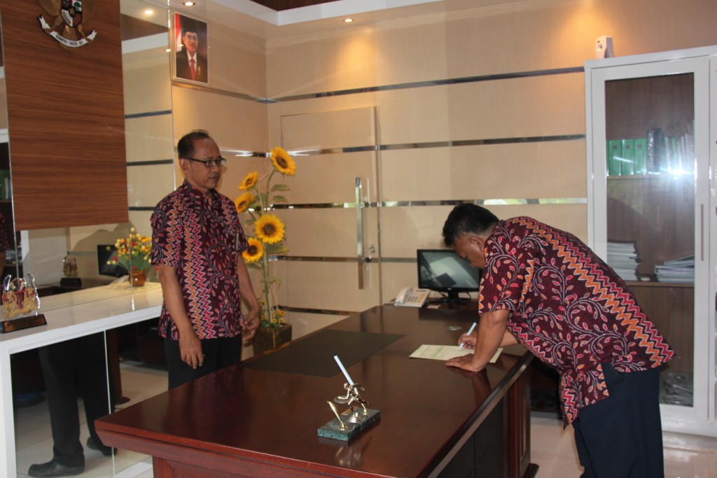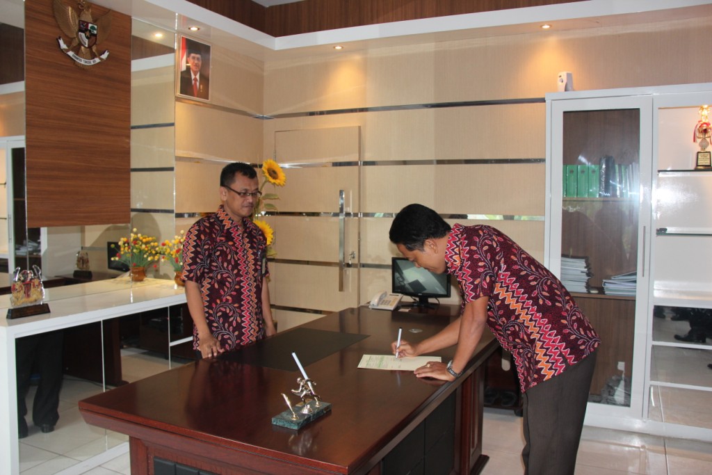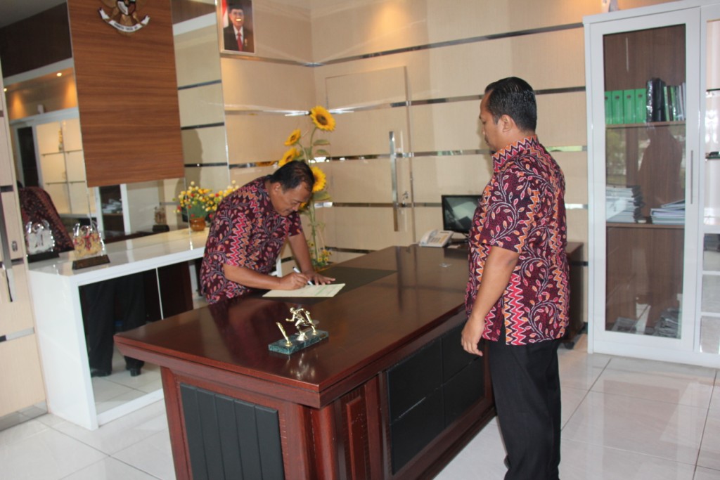 Pamekasan – Kantor Pelayanan Kekayaan Negara dan Lelang (KPKNL) Pamekasan menyelenggarakan penandatanganan Kontrak Kinerja Kemenkeu Four pada Jumat (29/01) di ruang kepala KPKNL Pamekasan. Acara yang diawali dengan sambutan dan arahan Kepala KPKNL Pamekasan Purwono dihadiri oleh seluruh pejabat Eselon IV dan para pegawai KPKNL Pamekasan.