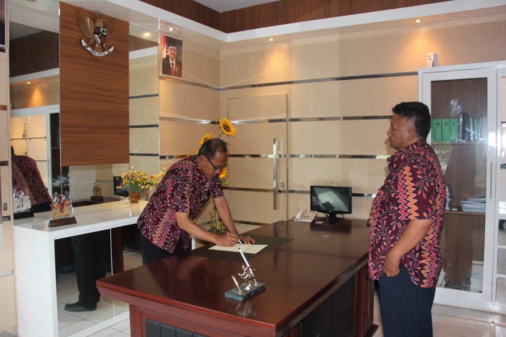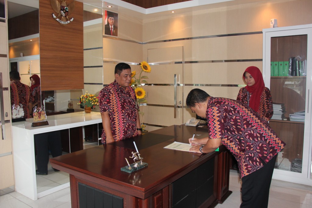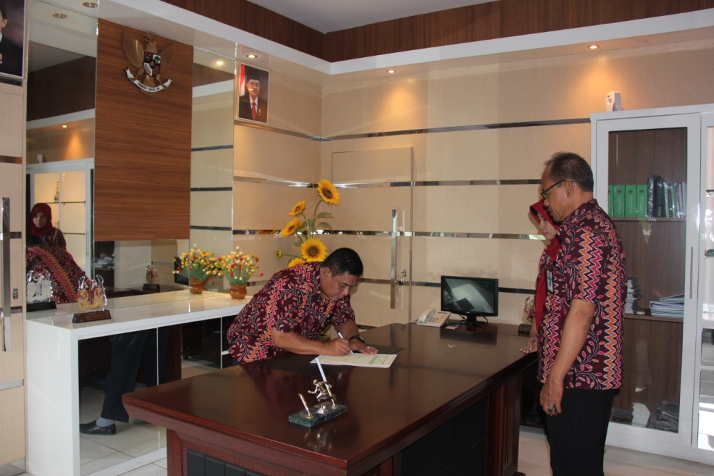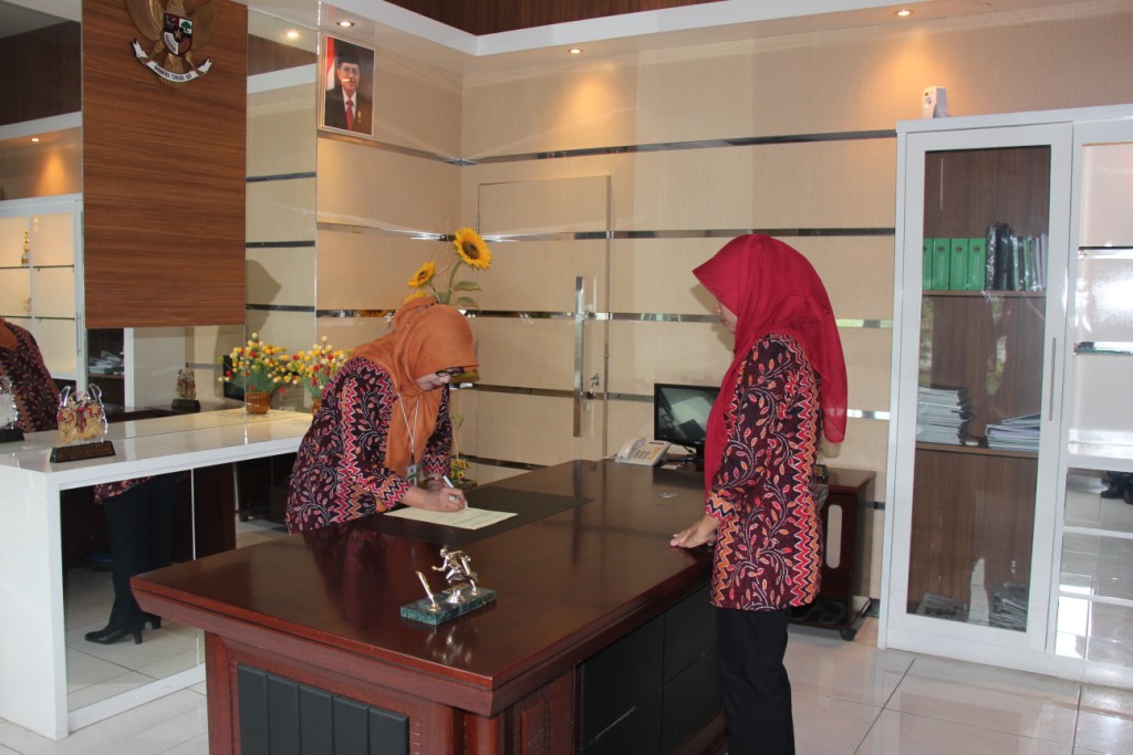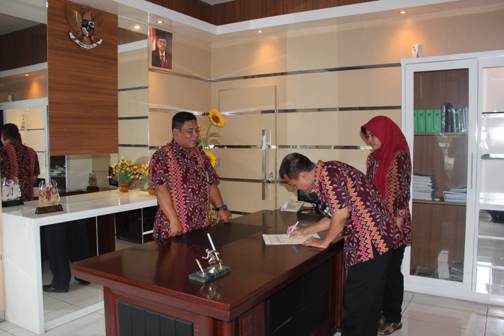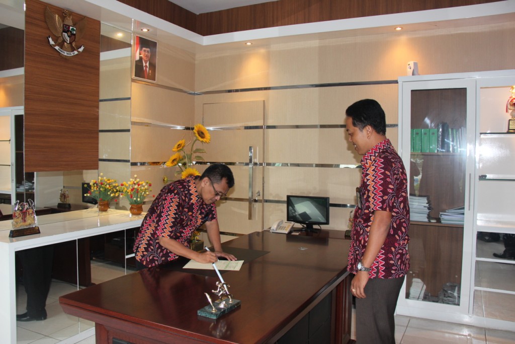 Pamekasan – Kantor Pelayanan Kekayaan Negara dan Lelang (KPKNL) Pamekasan menyelenggarakan penandatanganan Kontrak Kinerja Kemenkeu Four pada Jumat (29/01) di ruang kepala KPKNL Pamekasan. Acara yang diawali dengan sambutan dan arahan Kepala KPKNL Pamekasan Purwono dihadiri oleh seluruh pejabat Eselon IV dan para pegawai KPKNL Pamekasan.