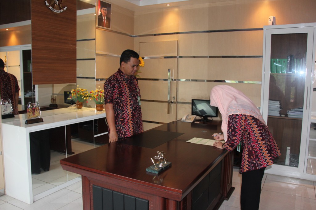 Pada akhir sambutannya Purwono berpesan agar para pejabat Eselon IV harus menjadi suri teladan bagi bawahannya dan harus berupaya menggerakkan seluruh sumber daya yang dimiliki serta secara aktif mengevaluasi pencapaian target kinerja masing-masing Seksi/Subbag. (Penulis/fotografer: Seksi HI)