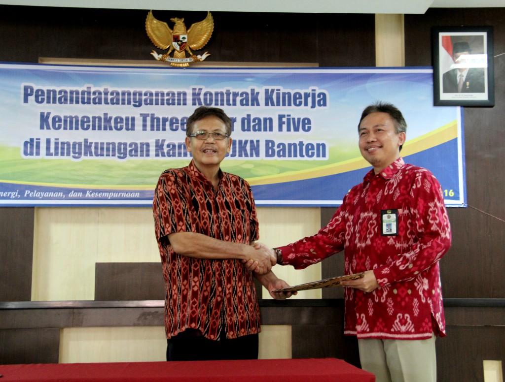 Tangerang – Kantor Pelayanan Kekayaan Negara dan Lelang (KPKNL) Tangerang melakukan penandatangan Kontrak Kinerja (KK) Kemenkeu Four dan Five Tahun 2016. Kegiatan ini sebelumnya diawali dengan persiapan dan pembinaan dari Kepala KPKNL Tangerang kepada seluruh jajarannya pada 3 Februari 2016. Hal ini sebagai tindak lanjut dari penandatangan kontrak kinerja Kemenkeu-Three antara Kepala Kanwil DJKN Banten dengan para Kepala Kantor di Lingkungannya 29 Januari 2016 lalu.