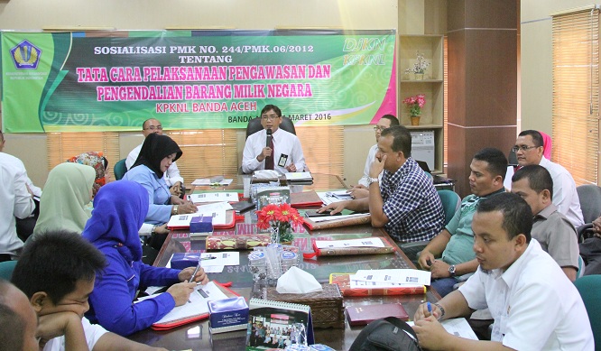 Banda Aceh – Senin (14/3) Menjelang batas akhir pelaporan pengawasan dan pengendalian BMN oleh para satuan kerja, Kantor Pelayanan Kekayaan Negara dan Lelang (KPKNL) Banda Aceh kembali mensosialisasikan Peraturan Menteri Keuangan Nomor 244/PMK.06/2012 tentang Tata Cara Pelaksanaan Pengawasan dan Pengendalian Barang Milik Negara (Wasdal BMN). Kegiatan yang dilaksanakan di Ruang Rapat KPKNL Banda Aceh ini bertujuan untuk me-refresh kembali wawasan mengenai Wasdal BMN kepada para satuan kerja, sekaligus memberikan jawaban atas pertanyaan dan masalah yang dihadapi agar satker dapat segera menyampaikan laporannya.