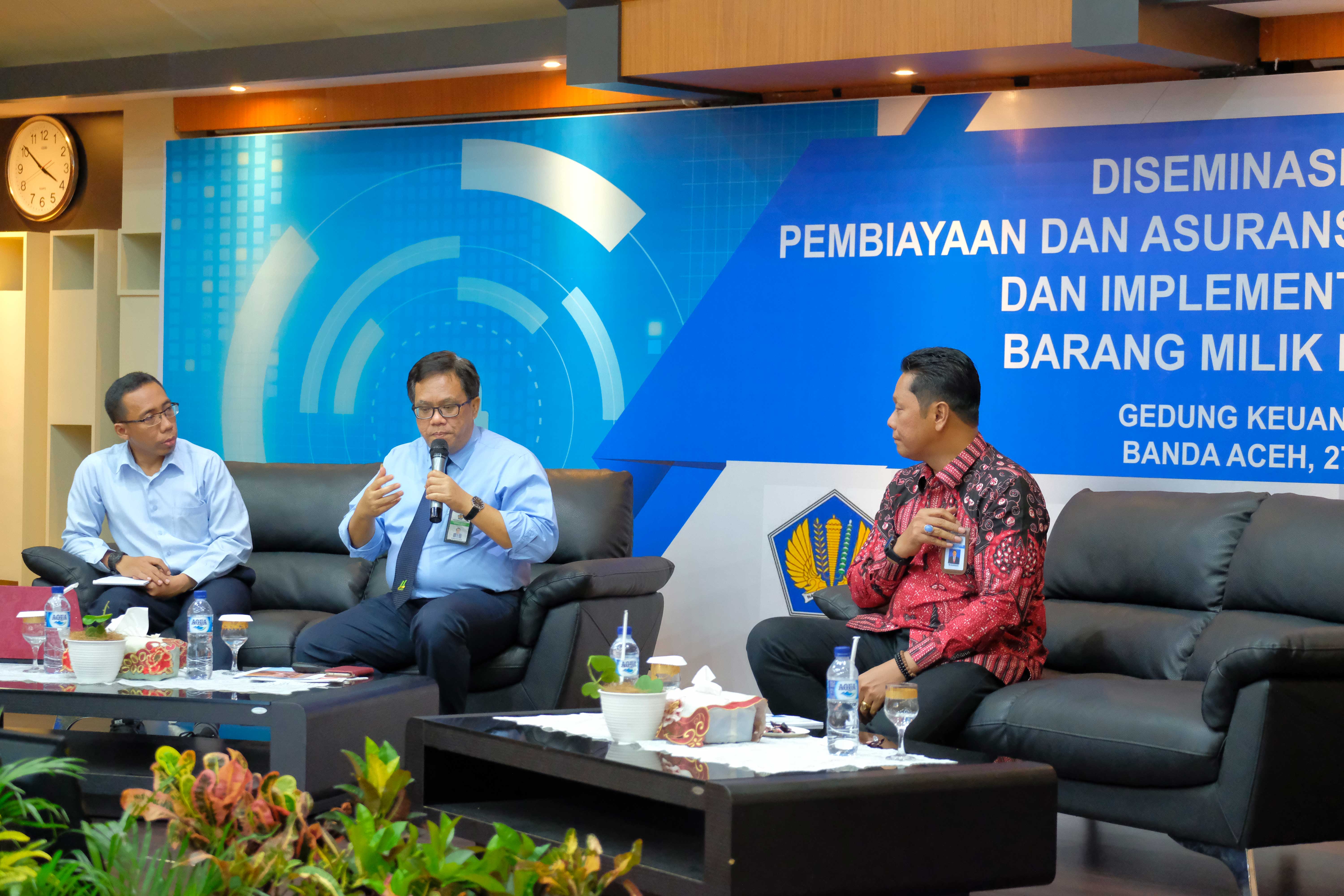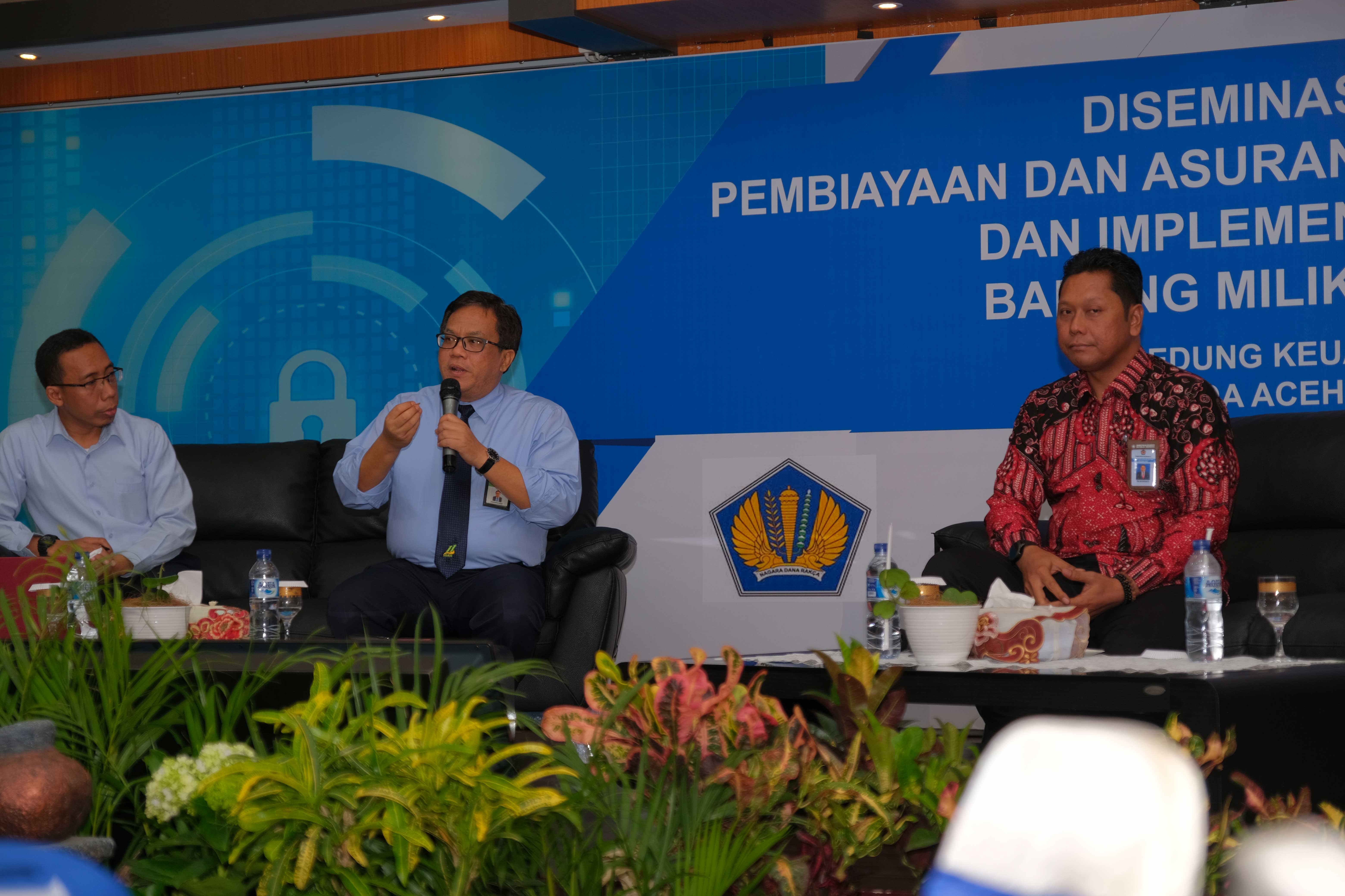 Banda Aceh – Pada hari Rabu (27/03), Kementerian Keuangan (dhi. Badan Kebijakan Fiskal bekerjasama dengan DJKN) menggelar Diseminasi Strategi Pembiayaan dan Asuransi Risiko Bencana (PARB) dan Implementasi Asuransi Barang Milik Negara (BMN) di Gedung Keuangan Negara (GKN) Banda Aceh. Dihadiri oleh masing-masing perwakilan Unit Eselon I Kementerian Keuangan, beberapa perwakilan dari Kementerian/Lembaga, dan Pemerintah Daerah. Kegiatan ini membahas mengenai strategi pembiayaan dan asuransi risiko bencana (PARB), serta tahapan pelaksanaan asuransi Barang Milik Negara (BMN).