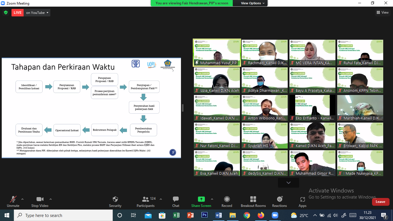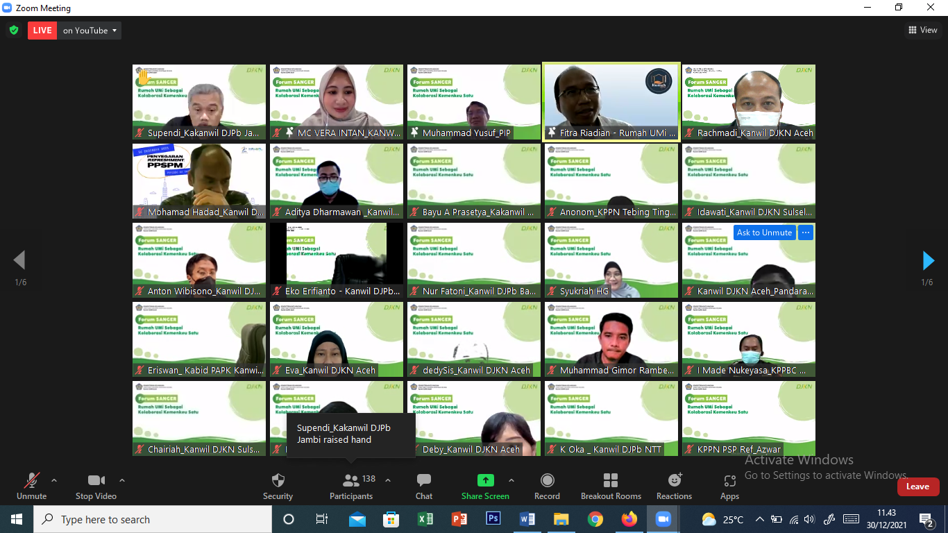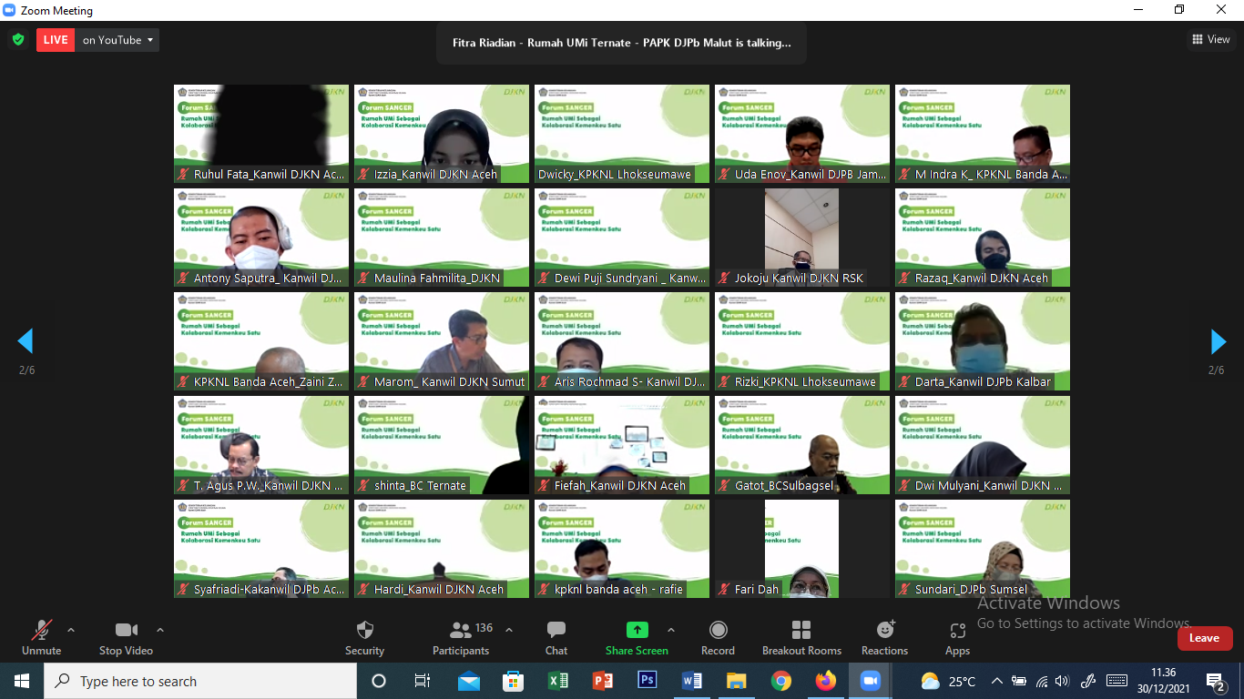 Acara yang dipandu oleh Vera Intan Karlina ini dihadiri oleh hampir 200 partisipan dari Kantor Wilayah DJKN, DJPb, DJP, serta DJBC seluruh Indonesia dan ditayangkan melalui aplikasi zoom meeting maupun kanal youtube Kanwil DJKN Aceh. Acara dibuka oleh Kepala Kanwil DJKN Aceh, Syukriah HG, yang pada intinya menyampaikan terima kasih atas kesediaan BLU PIP untuk hadir dan berbagi pengetahuan dengan Keluarga Besar Kemenkeu Aceh. Selanjutnya Kepala Kanwil DJPb Propinsi Aceh, Syafriadi, dalam sambutannya menyatakan bahwa Rumah UMi bisa menjadi sarana untuk memperkuat kolaborasi Kemenkeu Satu dan media untuk memberikan sumbangsih kepada masyarakat di Aceh.