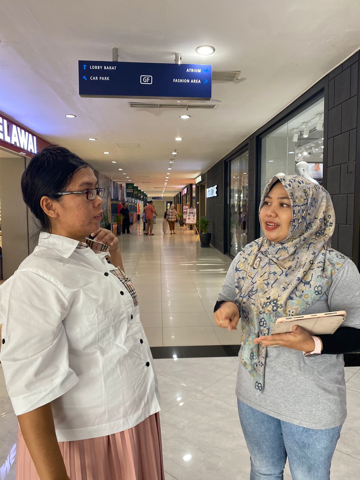 Aceh, memberikan penjelasan kepada para pengunjung pusat perbelanjaan Plaza